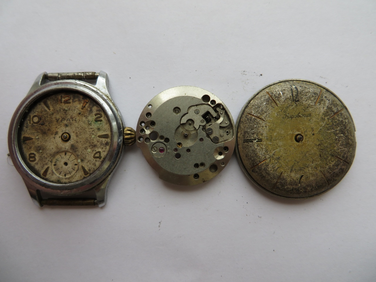 Корпус от старинных карманных часов и два механизма часов Уран и Кировские