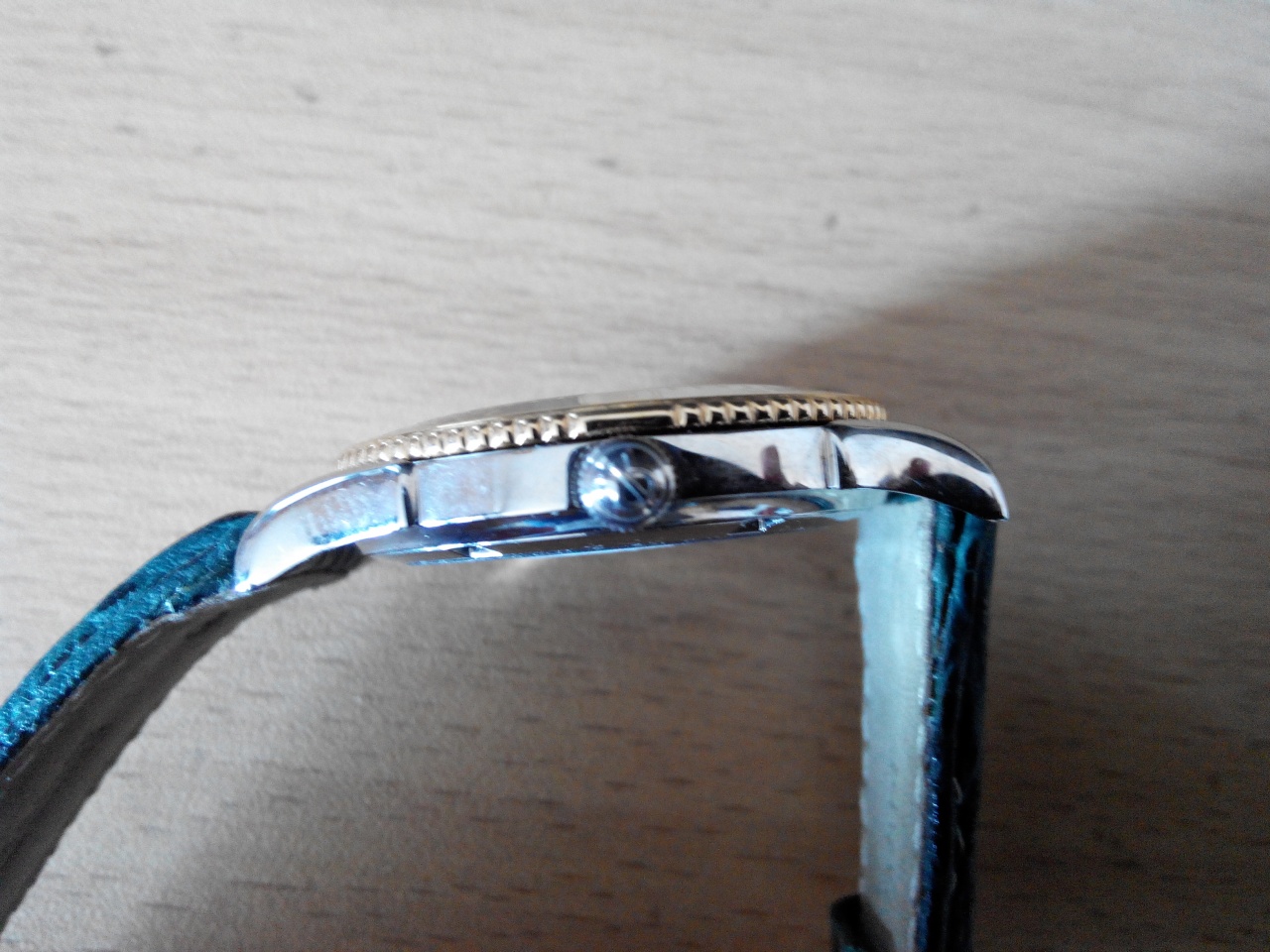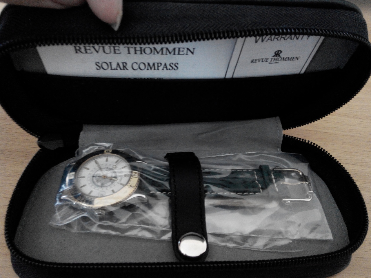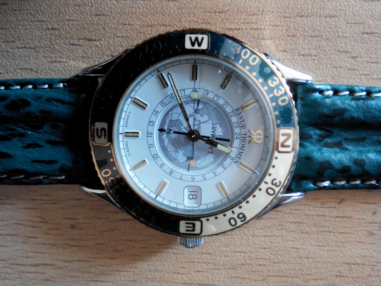 Безель - вращающийся в двух направлениях, что позволяет использовать часы в качестве солнечного компаса, сам безель промаркирован соответствующим образом. Безель двух цветов - тёмно-зелёного и кремового, цифры и риски - позолоченные.