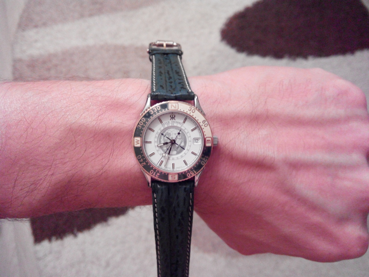 Дата на 3 часах. Центральная секундная стрелка. Люминесцентные стрелки и часовые метки.