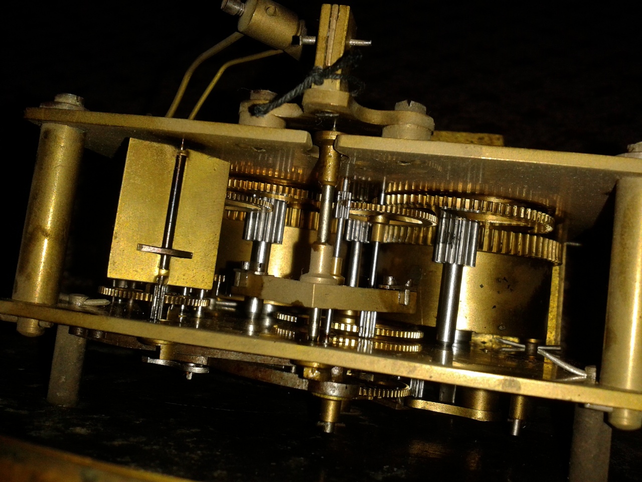 В хорошем состоянии, на отличном ходу, необычный держатель гонга в виде девушки-арфистки, оригинальный ключ.