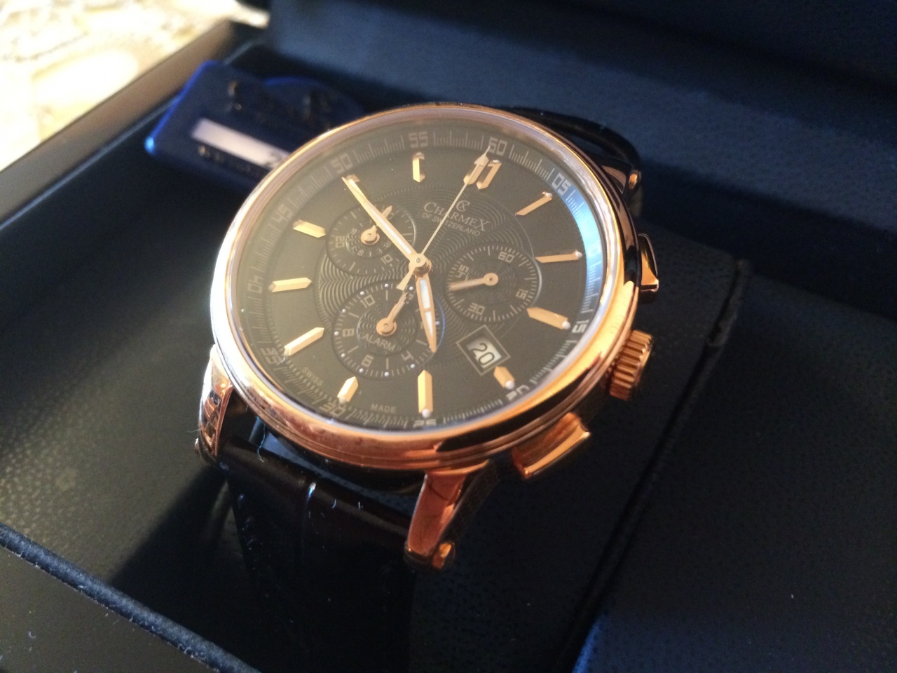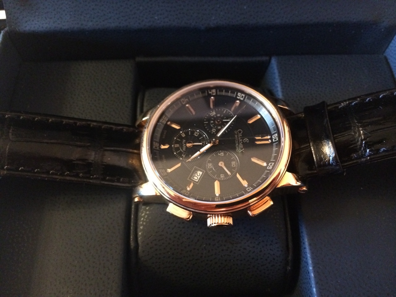 Кварцевый хронограф с устройством будильника. Механизм RONDA калибр 5130.D (Startech. На 13 камнях.). Секундная стрелка смещена на маленький циферблат (в 2-3 часа). Дополнительные циферблаты: накопитель в общей сложности на 12 часов (положение 9-10 часов) используется 2 стрелки часовая и минутная с шкалой 30 минут, время срабатывания будильника (положение 6 часов). Секундомер с режимами ADD и SPLIT. Аппертура даты. Срок службы батареи 48 месяцев.
