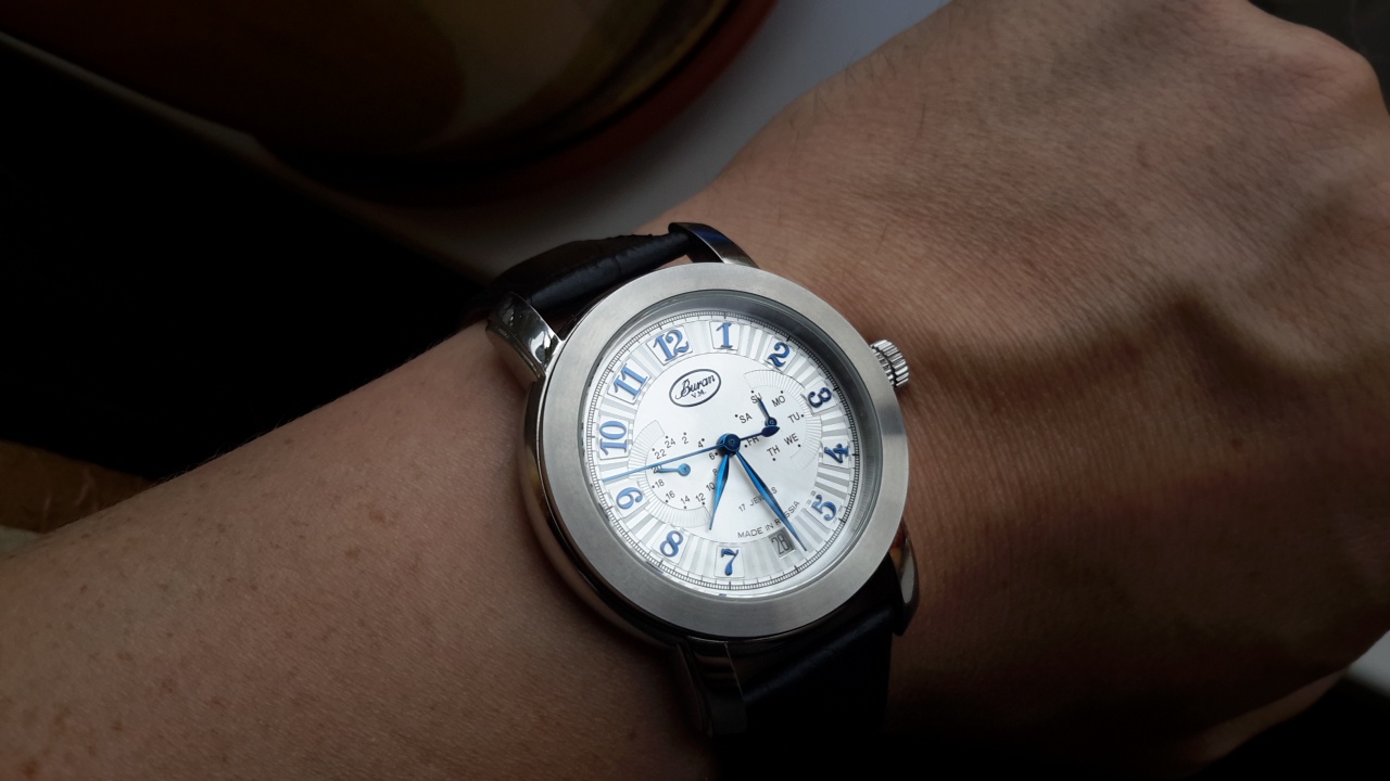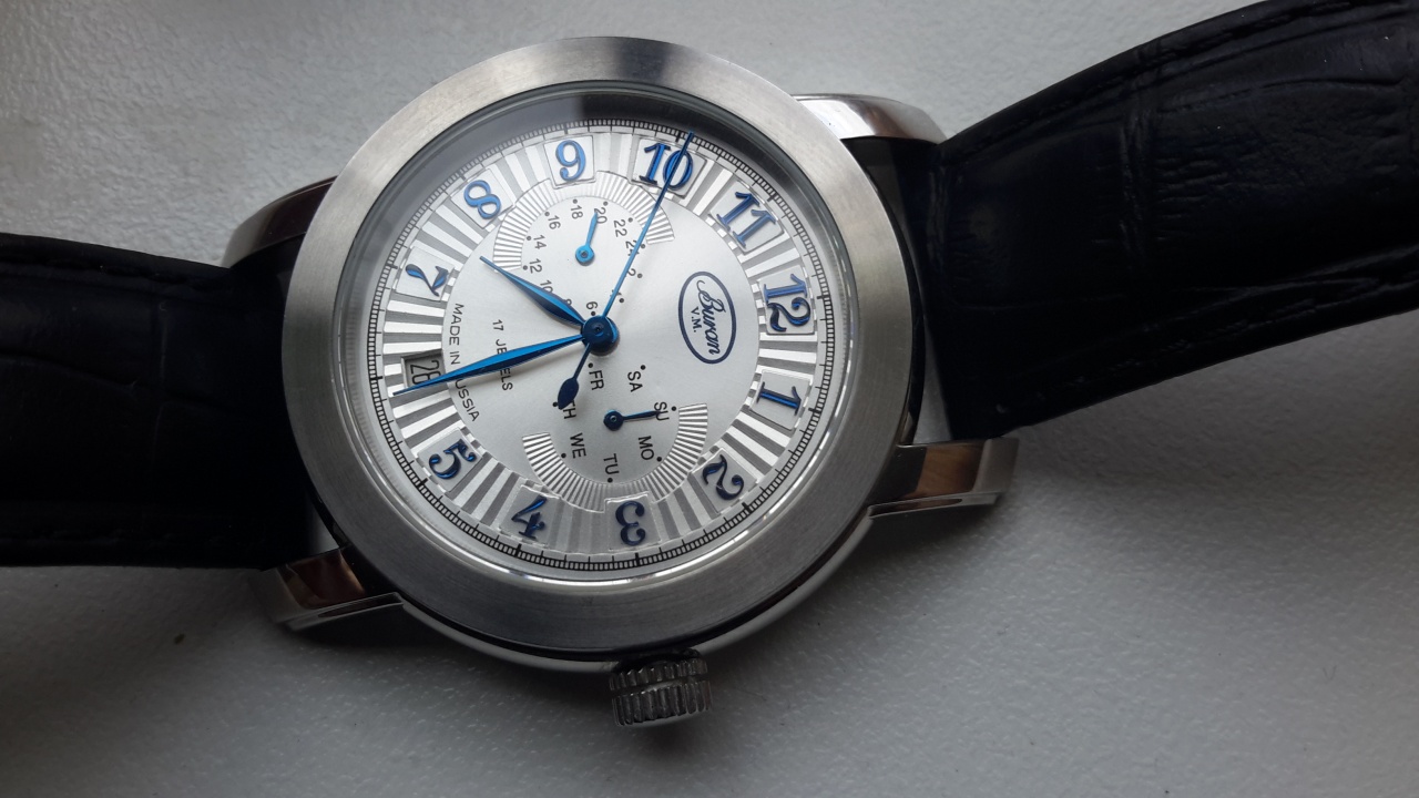 Продаю красивые часы "Буран" на механизме "Полет" 26669 с ручным заводом, календарем, днями недели и дополнительным 24-часовым циферблатом. Корпус нержавеющая сталь, WR3, минеральное стекло. Часы выпущены ограниченной серией (700 штук), куплены осенью 2012 года. Часы в отличном состоянии, практически не носились, т.к. не подошли по стилю. Продаю с целью оптимизации коллекции.