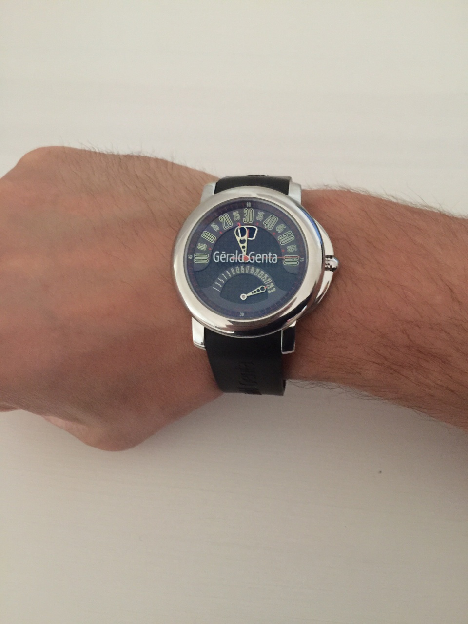 Предлагаю к продаже часы для настоящих ценителей. Gerald Genta Arena Biretro 45mm. Часы в достойном состоянии, находились в коллекции и носились не часто. Каучук на большое запястье.
