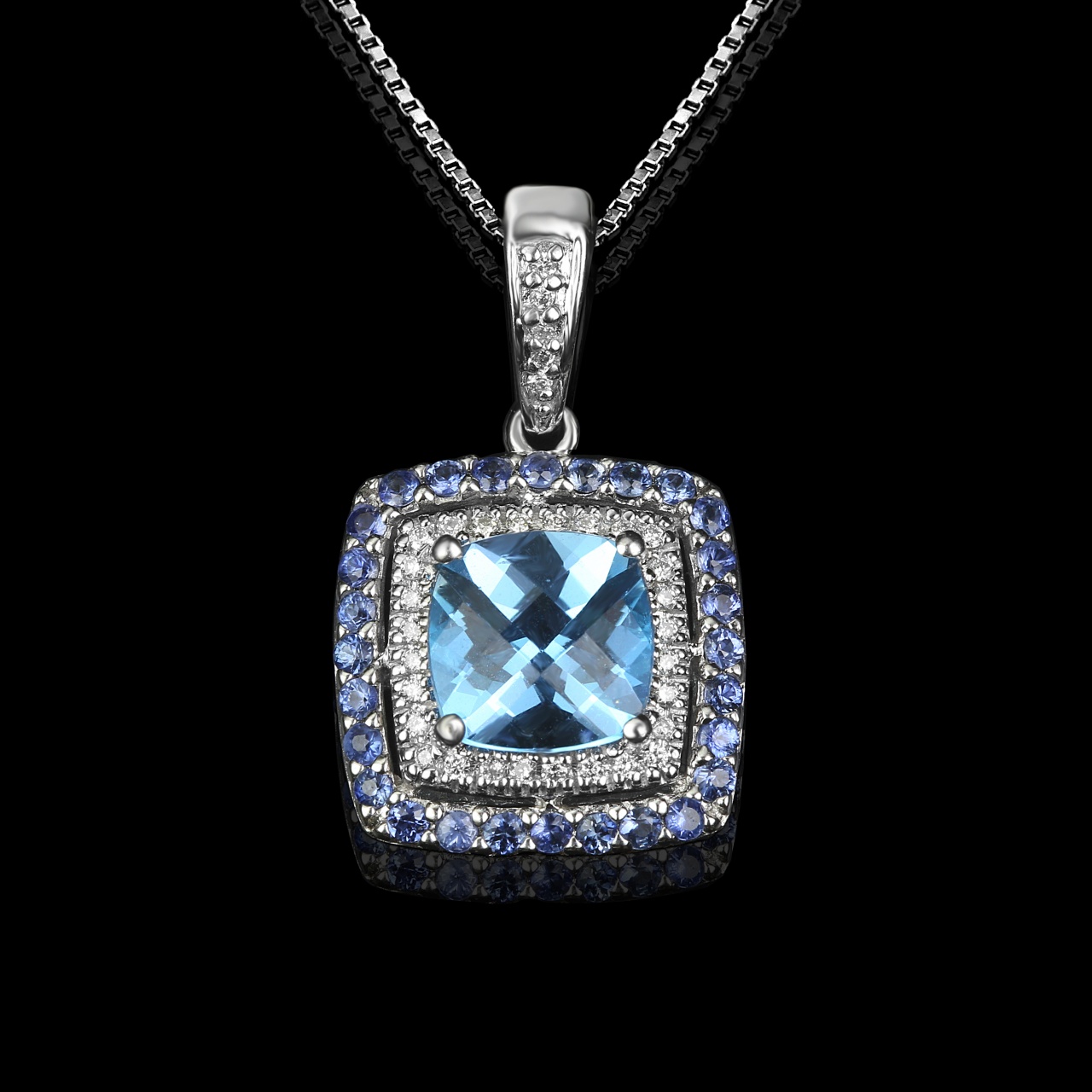 В продаже великолепный комплект (подвеска и кольцо) из белого золота с топазом, сапфирами и бриллиантами.