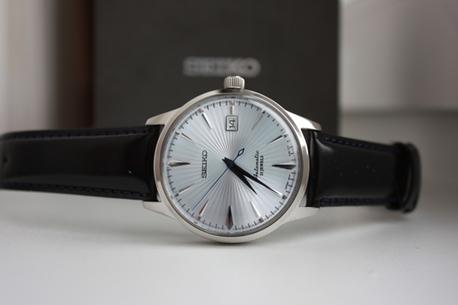 Продаю новыми (полный комплект) в Москве ,замечательные Seiko SARB065 Coctail Time. Автоматический калибр 6R15,Диаметр 40мм, Сложноокрашенный циферблат ,дающий палитру цветов в бело-серо-голубоватых тонах в зависимости от освещения, имеют красивый гильош на циферблате. Стрелки - полированная сталь, Секундная стрелка - скорее сине-чернильная по цвету. Кожаный ремень черного цвета со стильной чернильной строчкой и застежкой клипсой, прозрачная задняя крышка. Сделаны в Японии и для Японии. Цена 24тр