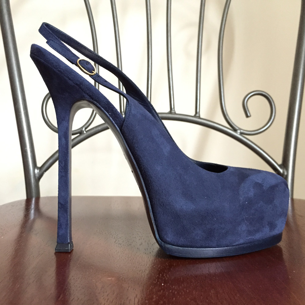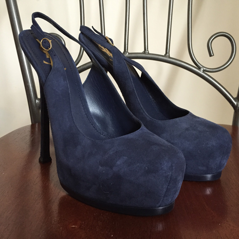 Yves Saint Laurent шикарные женские туфли, синяя замша!