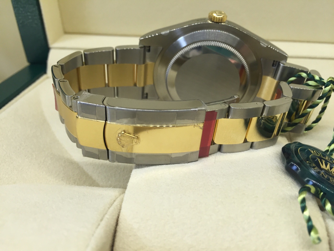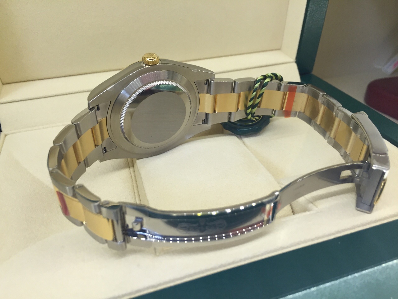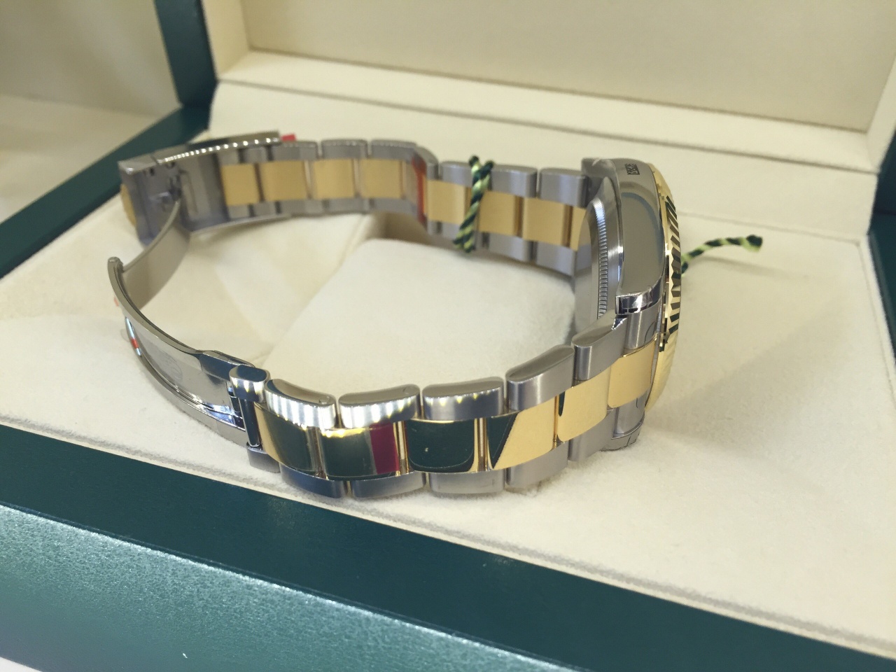 КорпусOyster, 41 мм, сталь и желтое золото, Конструкция Oyster Цельный корпус, привинчиваемые крышка и заводная головка, Диаметр 41 мм, Материал Желтый, Rolesor (сочетание стали 904L и 18-каратного желтого золота), Безель Рифленый, Заводная головка Привинчиваемая, с системой двойной герметизации Twinlock, Стекло Сапфировое, устойчивое к появлению царапин, циклопная линза в окошке индикации даты, Водонепроницаемость До 100 м, Механизм Perpetual, автоматический подзавод, Калибр 3136, производство Rolex, Функции Центральные часовая, минутная и секундная стрелки. Мгновенно устанавливаемая дата с возможностью быстрой корректировки. Возможность остановки секундной стрелки для выставления точного времени, Точность Сертификат COSC, Осциллятор Синяя парамагнитная спираль Parachrom. Эффективная противоударная система Paraflex, Завод часов Автоматический подзавод в двух направлениях с помощью ротора Perpetual, Браслет Oyster, плоские трехрядные звенья, Материал браслета Желтый Rolesor (сочетание стали 904L и 18-каратного желтого золота), Застежка Oysterclasp с раскладывающейся пряжкой и удлиняющим до 5 мм звеном Easylink, Циферблат Темно-серый