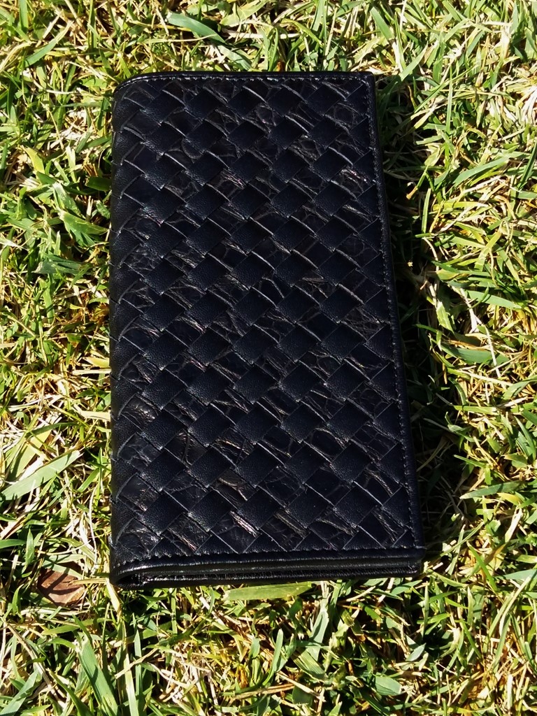 Продается новое вертикальное портмоне ручной работы от итальянской мануфактуры из города Модена. Портмоне изготовлено в стилистике изделий Bottega Veneta из комбинированной плетенной плетенной кожи нильского крокодила и телячьей кожи высочайшего качества выделки.