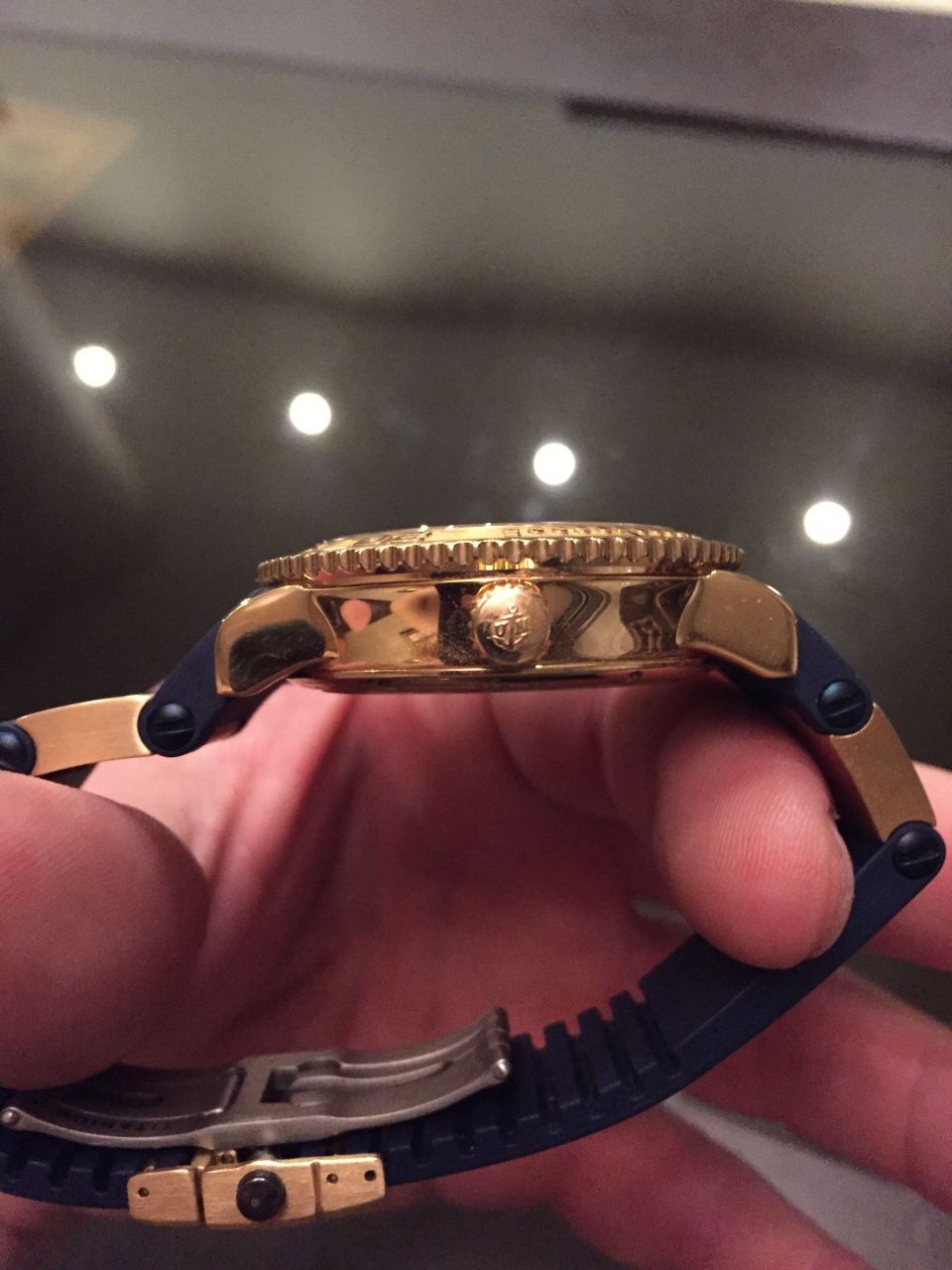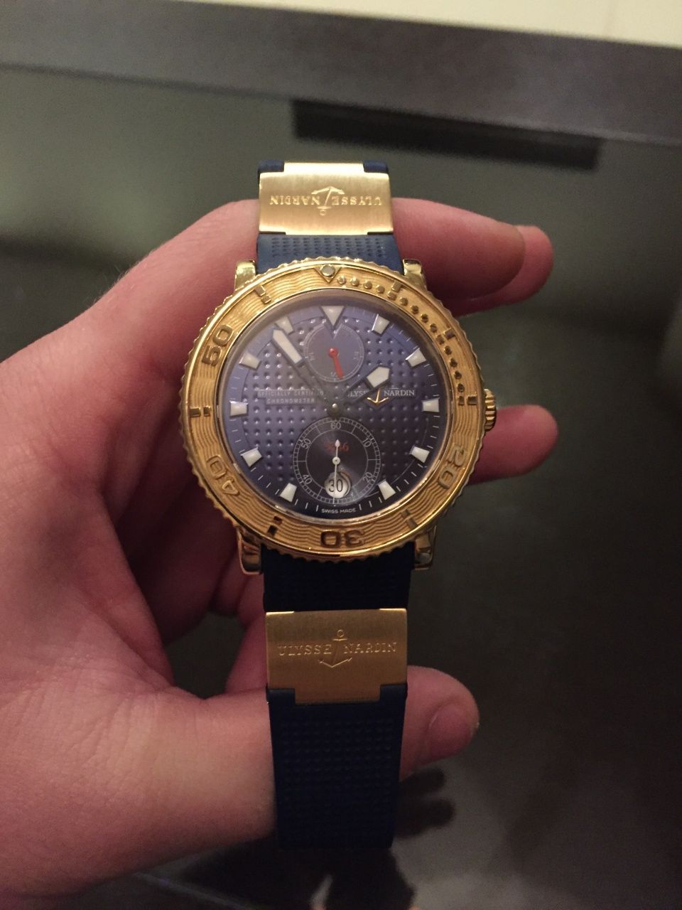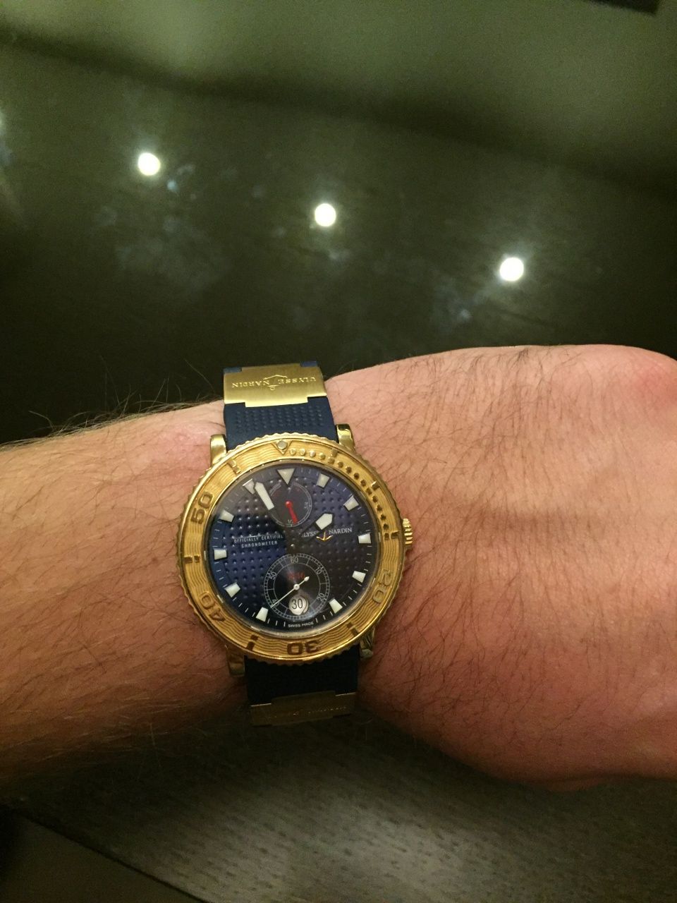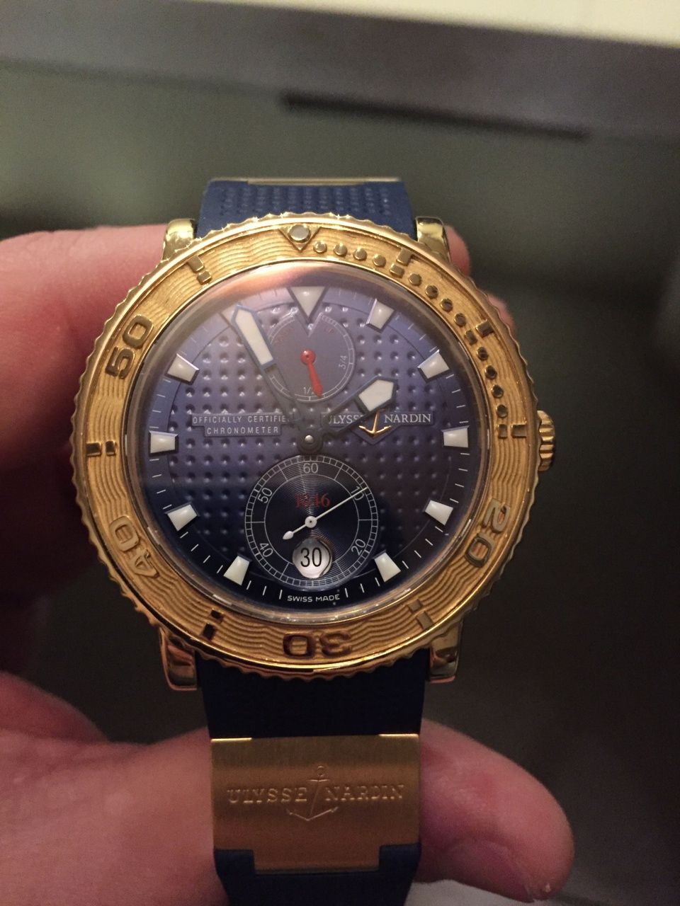 Очень красивые часы, новый ремень! Обрезан под крупную руку, недавно сделал полировку так как продавать не собирался, но появилась другая модель которую хочу приобрести. Циферблат и ремень синие, при живом свете очень эффектные)!