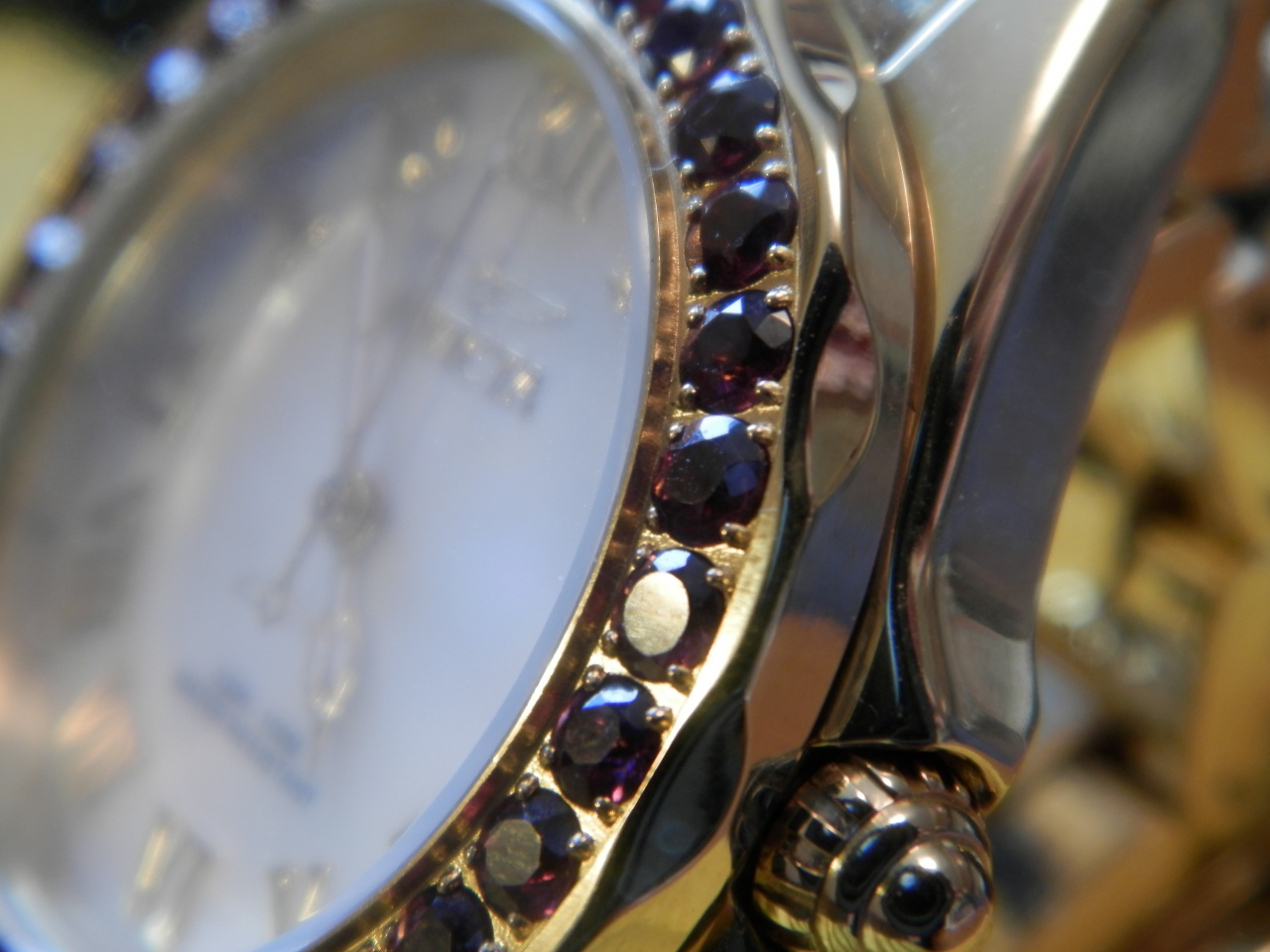 Безель - позолоченный,инкрустированный натуральными розовыми гранатами ( родолитами)