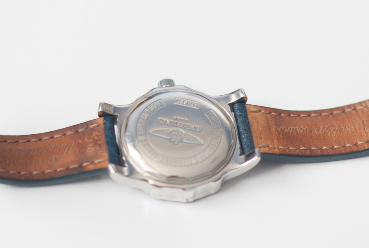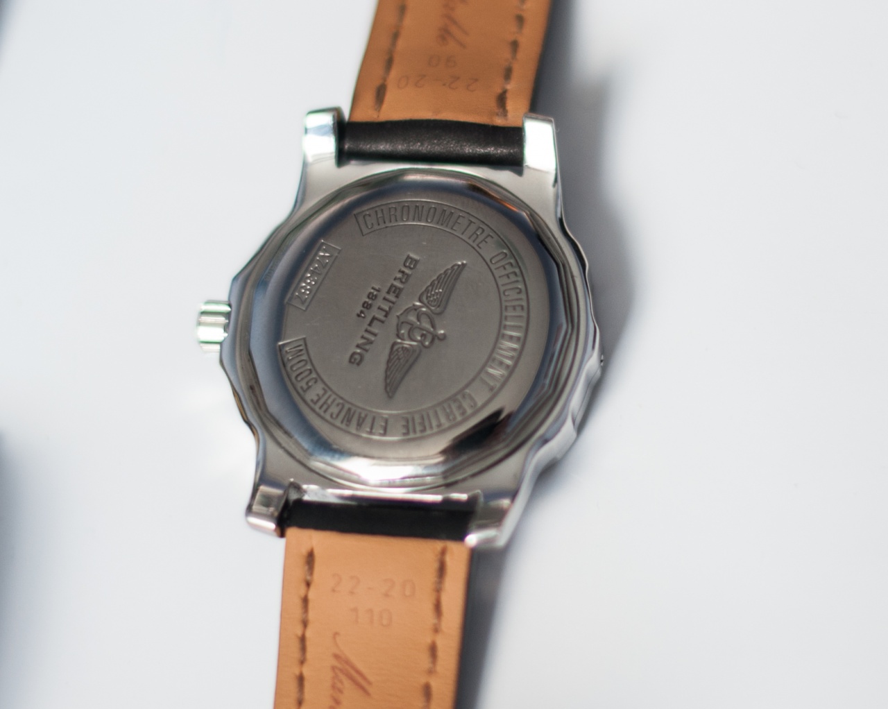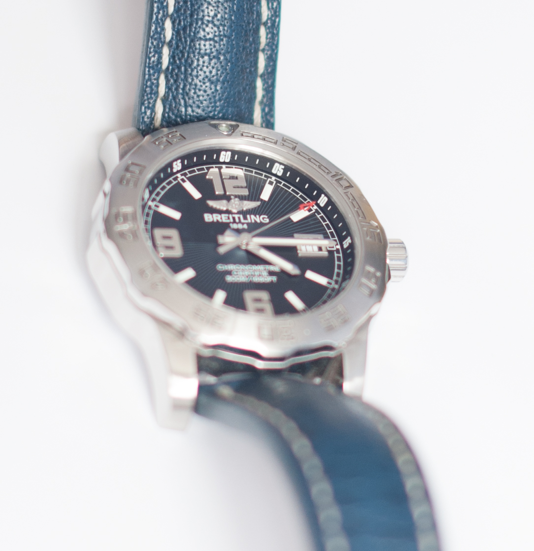 Черный циферблат "VOLCANO BLACK", двойное антибликовое покрытие, идеальный размер 44 мм, водозащита 500 метров, SuperQuartz Caliber 74 от BREITLING, точность COSC (отклонение не более 5 секунд в год), срок службы батареи до 8 лет.