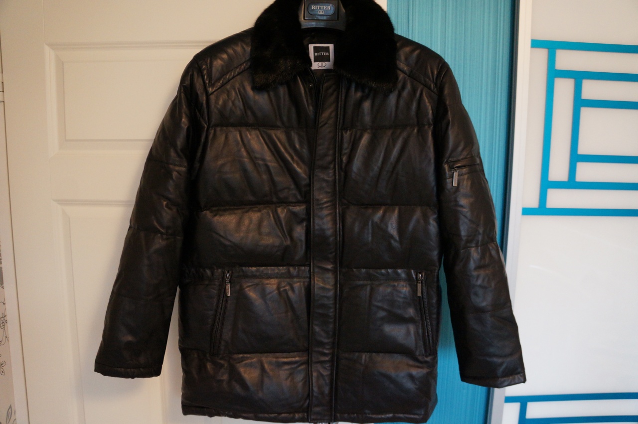 Абсолютно новая, австрийская, кожаная куртка на пуху с меховым воротником RITTER.
