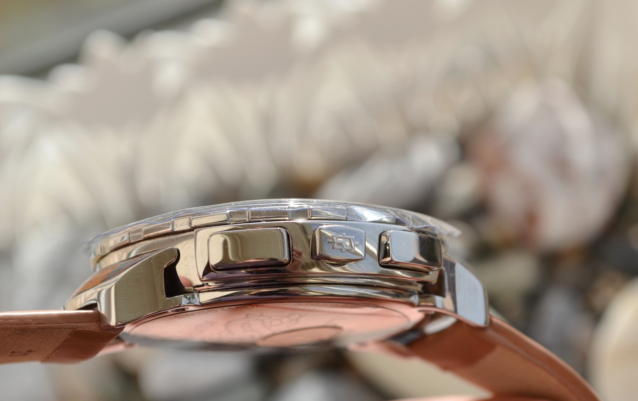 Корпус часов выполнен из полированной стали диаметр 46мм, ремешок кожаный, особой выделки, очень мягкий, антиаллергический, очень приятный на ощупь, ширина 20мм. Застежка-бабочка, из стали, с логотипом бренда.
