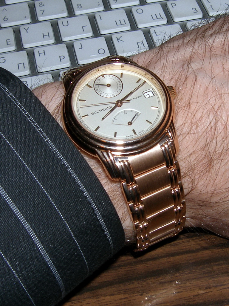 Комплекция у меня далеко не спортивная, запястье тонкое 16,5см, большую часть времени хожу в строгих костюмах, по этому часы подбирал таким образом, что бы они не смотрелись слишком пафосно, и небыли слишком большого размера. Люблю еще когда часы на браслете, как по мне так это практичнее и надежнее, ну тут как говорится у каждого свой вкус. Часы покупал только либо в исполнении из стали, либо из золота, т.к. не люблю различного рода покрытий, ну не лежит у меня душа к разного рода напылениям и PVD. Принцип выбора был не исходя из брендовости или престижности той или иной марки, а просто из того нравятся часы или нет.