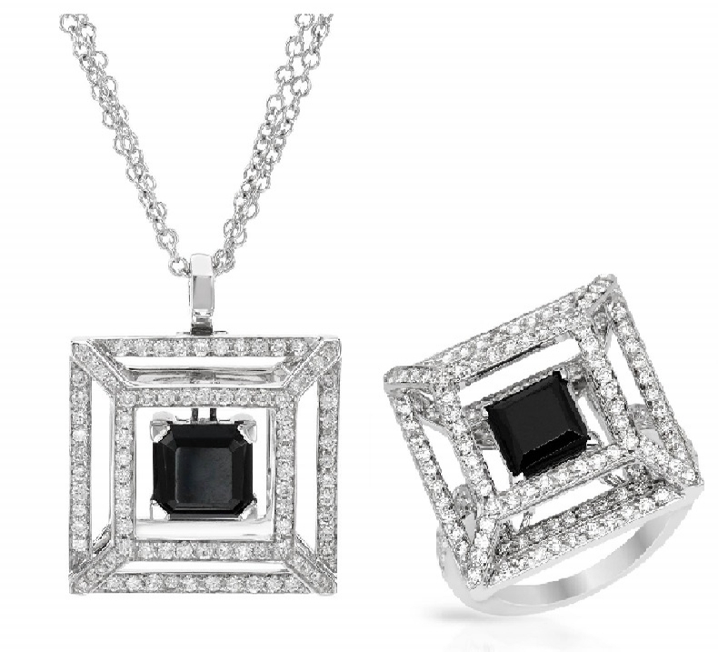 Кольцо LUCA CARATI с бриллиантами и черной шпинелью.