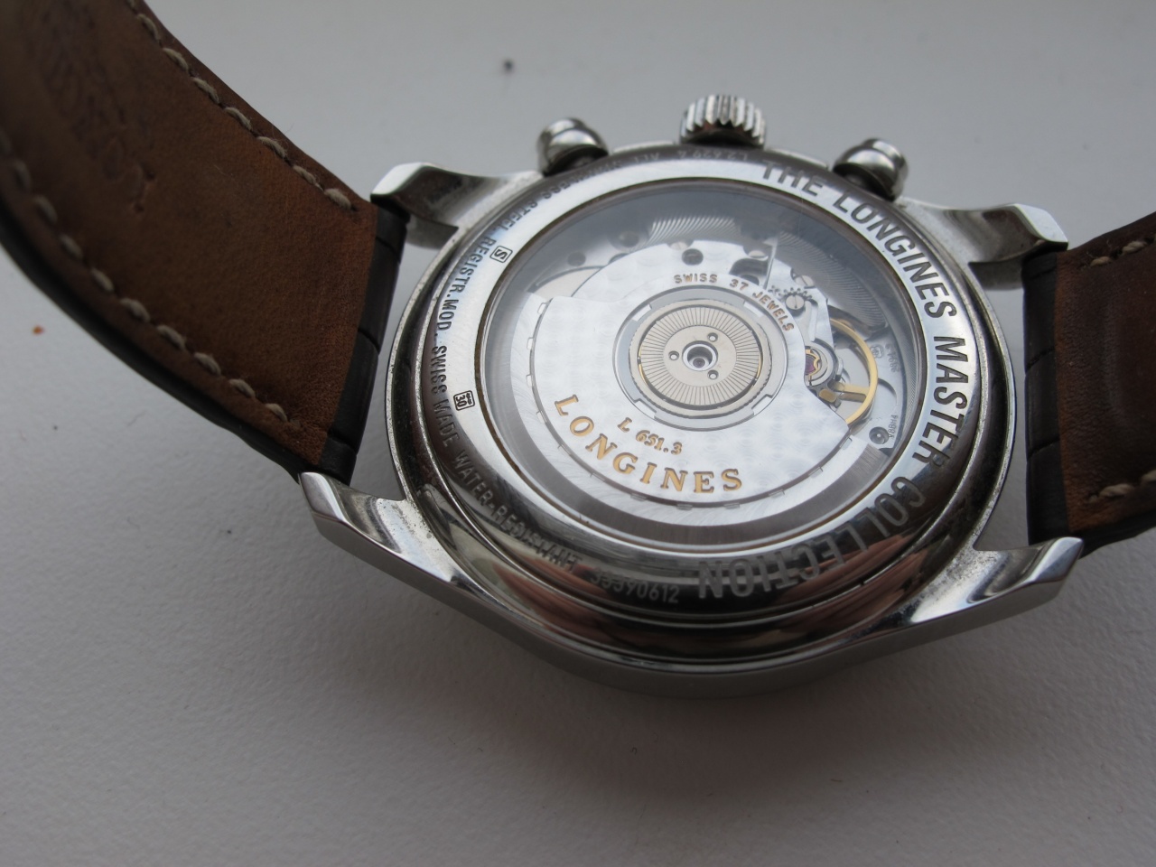 Механизм: хронограф с автоматическим подзаводом Калибр: L651 частота 28 800 полуколебаний в час, запас хода 42 часа Функции : Часы, минуты, малая секундная стрелка в положении «3 часа» и дата. Механизм хронографа: центральный счетчик секунд, 30-минутный счетчик в положении «9 часов».