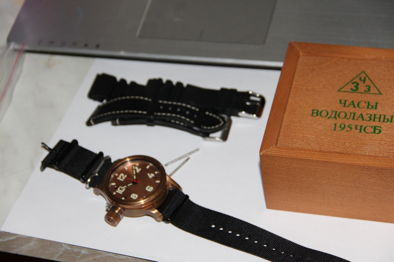 Полный комплект - коробка, паспорт, дополнительный бонус три ремешка: кожа, полиуретан и Nato-strap. Запасные шпильки для крепления ремешков.
