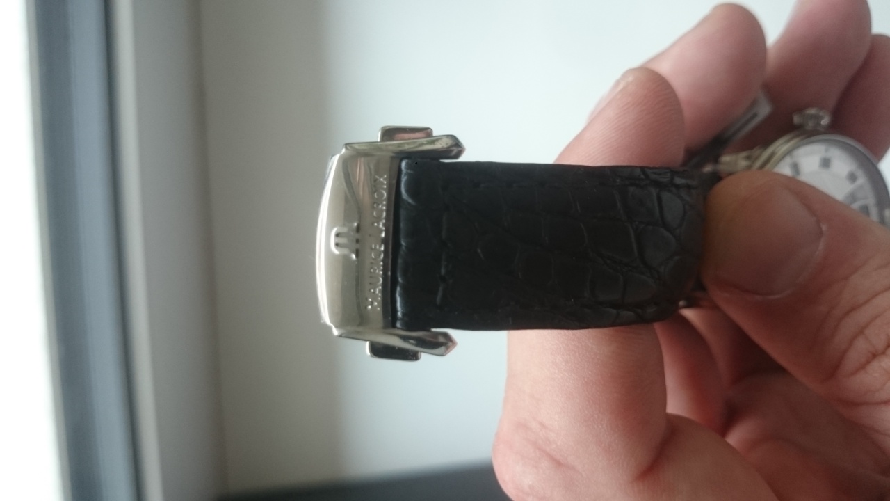 Maurice Lacroix MP6358-SS001-11E - механические часы с автоподзаводом. Прозрачная задняя крышка, противоударная система Incabloc. Большое окошко даты. Ретроградный указатель дня недели. Циферблат - серебро 925 пробы. Ремешок из крокодиловой кожи новый шит на заказ . Плоское сапфировое стекло с антибликовым покрытием. Люминесцентные стрелки.