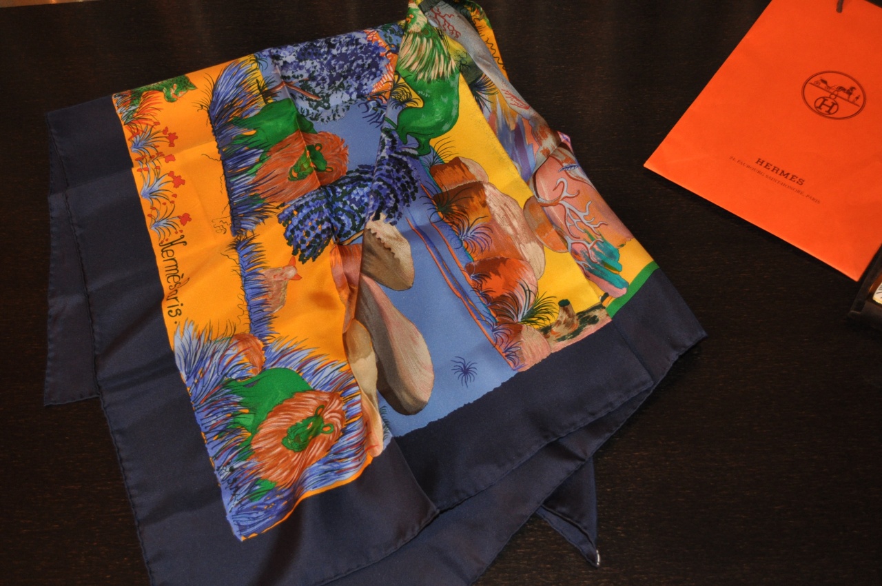 HERMES . шелковый платок - каре . 4 .