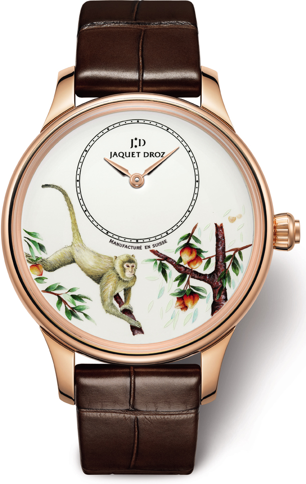 По случаю наступления Нового года по китайскому календарю, который пройдет под знаком Огненной Обезьяны, Jaquet Droz представляет четыре модели, посвященные многовековой дружбе часовой марки и Китая. Обезьяна, олицетворение мудрости и долголетия, занимает особое место в китайской культуре и, в частности, в восточном гороскопе. В XVIII веке Jaquet Droz стал одним из первых часовых Домов, открывших для себя Поднебесную.