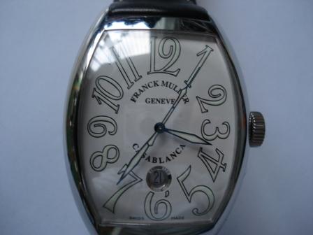 Продам FRANCK MULLER 8880 C DT CASABLANKA часы практически новые одевались раз 10 и то очень аккуратно, коробки и документы в наличии, в Москву и Питер доставка без проблем, это самый большой боченок из FRANCK MULLER размер 39mm X 47mm 55mm , толщина 17.5mm, в часах стоит платиновый ротар 950 пробы, ход часов идеальный цена 3500EUR.