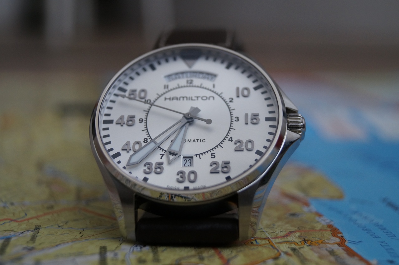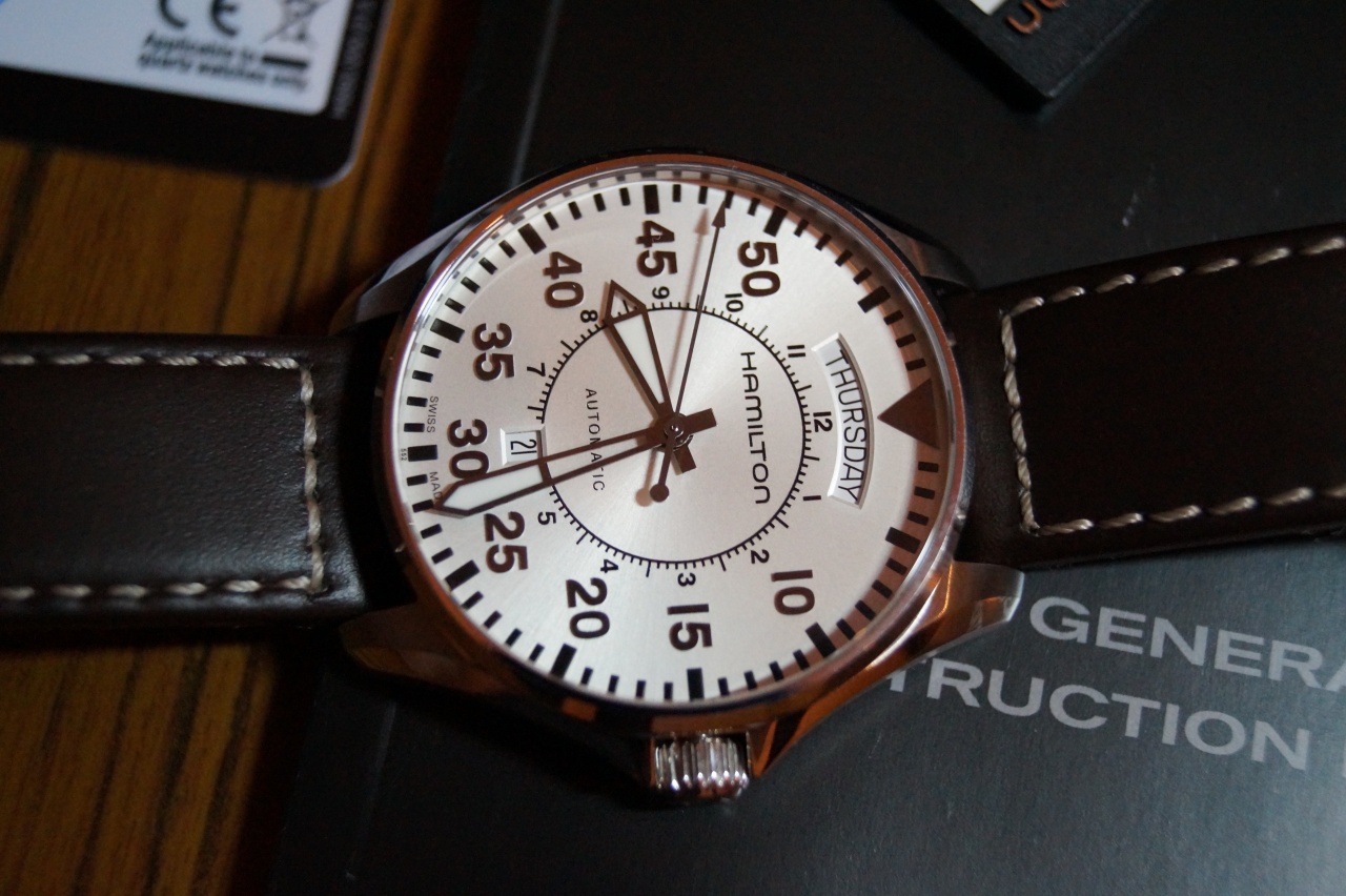 Продам часы HAMILTON Khaki Aviation Pilot Day-Date Auto. Механика с автоподзаводом. Часы новые, в пленках.Swiss made. Полный комплект: коробки, инструкция, гарантийная карта. Диаметр 42 мм. Калибр ETA 2834-2 Удобочитаемый циферблат, индикация даты и дня и люминесцентное покрытие Superluminova на стрелках. Мгновенный перевод дня недели и даты. Стоп секунда для настройки точного времени. Возвышающиеся металлические цифры, смотрятся очень эффектно. Сапфировое стекло. Водозащита 100 м. Корпус изготовлен из нержавеющей стали. Розничная цена в магазинах: от 54 700р. В живую часы очень красивые! Возможна продажа часов без ремешка, цена обсуждается отдельно. Продажа желательна в Краснодаре, но можно обсудить и отправку.