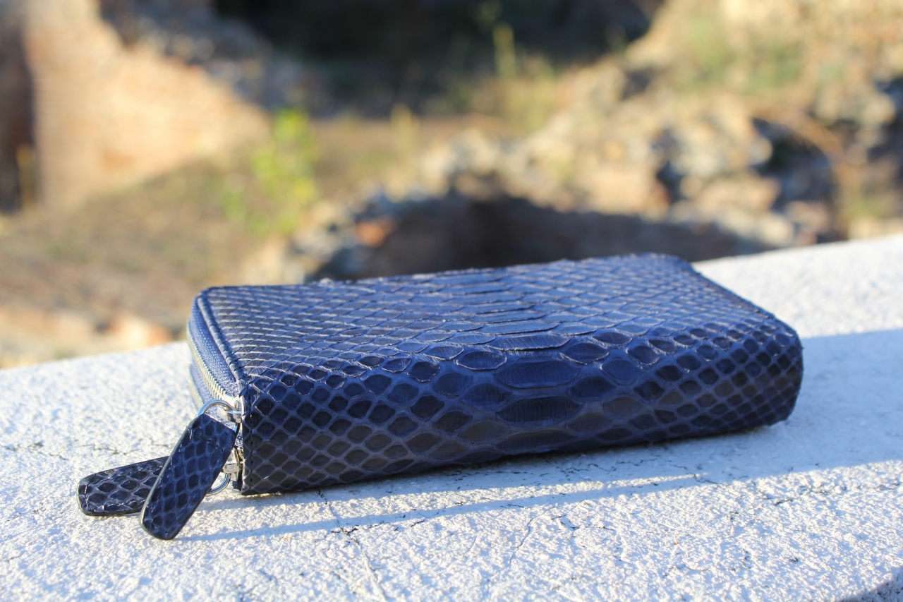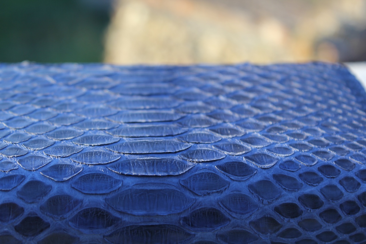 Новый клатч на двух молниях из кожи анаконды. Цвет синий. Италия