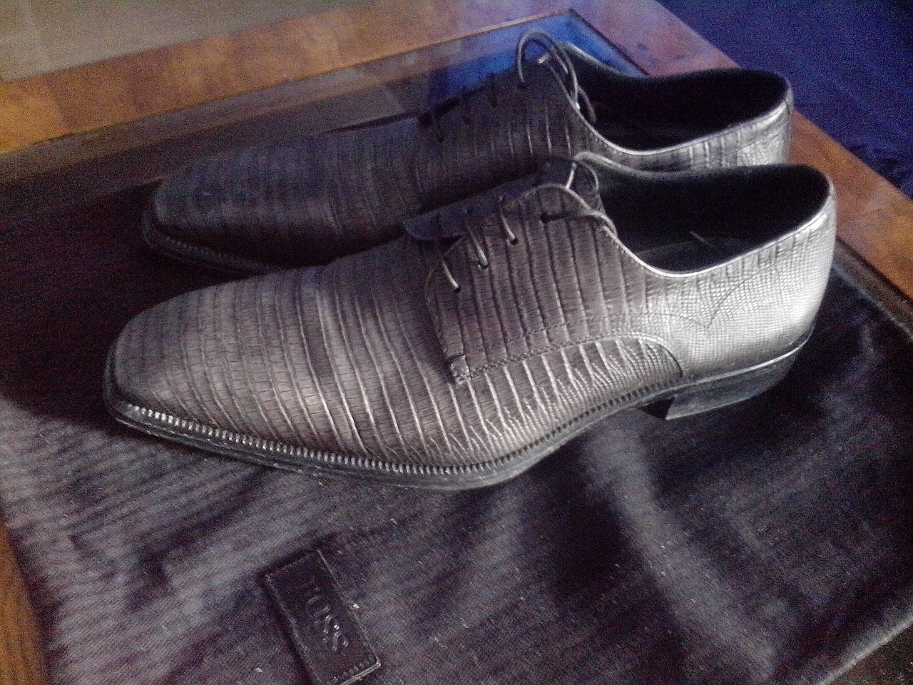 Классические туфли Hugo Boss. Цвет тёмно серый, идеально подходят под тёмные и светлые костюмы, а также под джинсы. Размер 9 (Российский 43).Мягкая, рефлёная кожа служит отличным завершением образа. Классическая подошва с тонкой фирменной профилактикой Hugo Boss защитит подошву от повреждений на долгий срок. Куплены год назад в Лондоне в подарок, но не подошли по размеру, одевались дома для примерки. Состояние – идеальное! Коробка отсутствует (ввиду перевозки), в комплекте фирменный велюровый чехол Hugo Boss. Стоимость новых $ 350.00, продам за 17 000.00 руб.(готов выслушать предложения). Красивые, эффектные, классические, с длинным срезным носком. Доставка в любой регион России почтой EMS, оплата, проверка при получении.