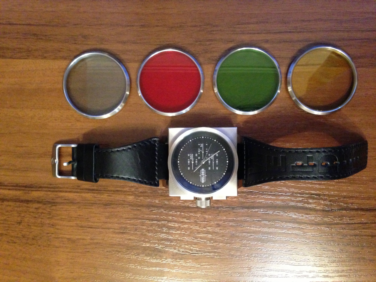 Продаются часы welder 5200 k 26 ,пришли из Америки,часы новые так как сняты плёнки в разделе б/у.В оригинальном боксе,два ремня-силиконовый и кожаный,корпус стальной,четыре сменных фильтра красный, светло-голубой, зеленый, желтый.