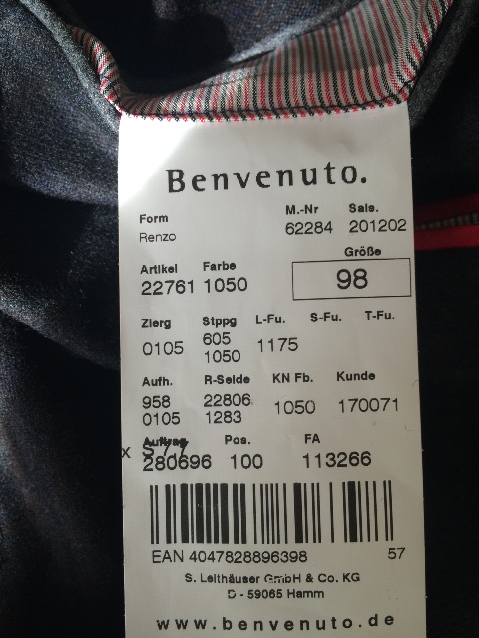 Стильный немецкий пиджак (BENVENUTO коллекция Purple Label)