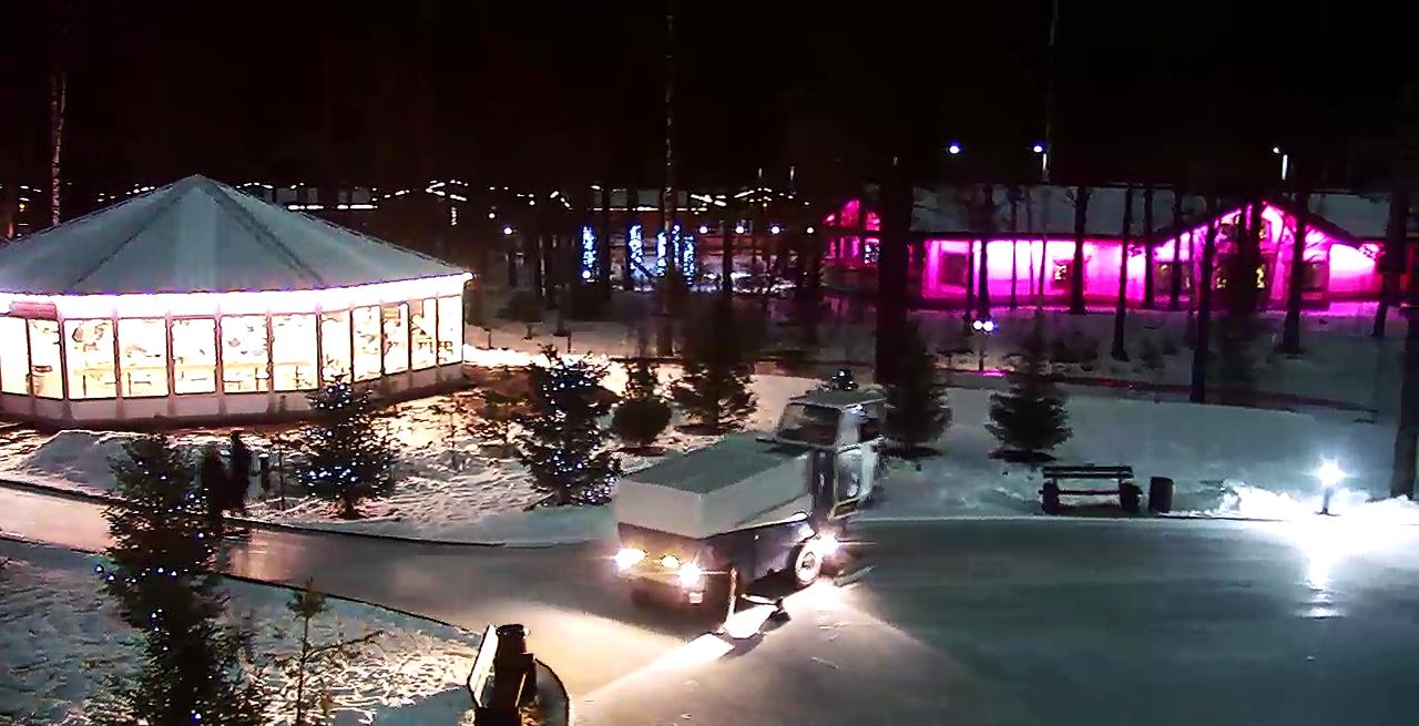 Ледовая трасса проходит посреди высоких деревьев, где вы можете скользить под приятную музыку и наслаждаться зимней сказкой.