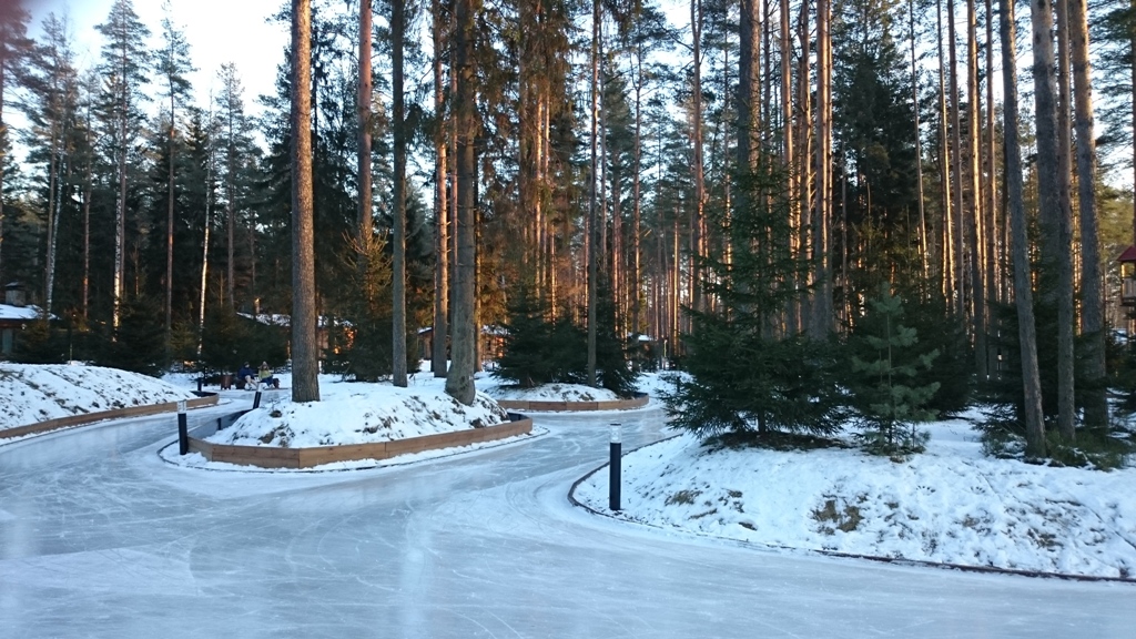 Лесной каток - оригинальный открытый каток протяженностью 1500 метров, расположенный в одном из самых красивых мест курорта "Охта Парк" - живописном сосновом лесу.