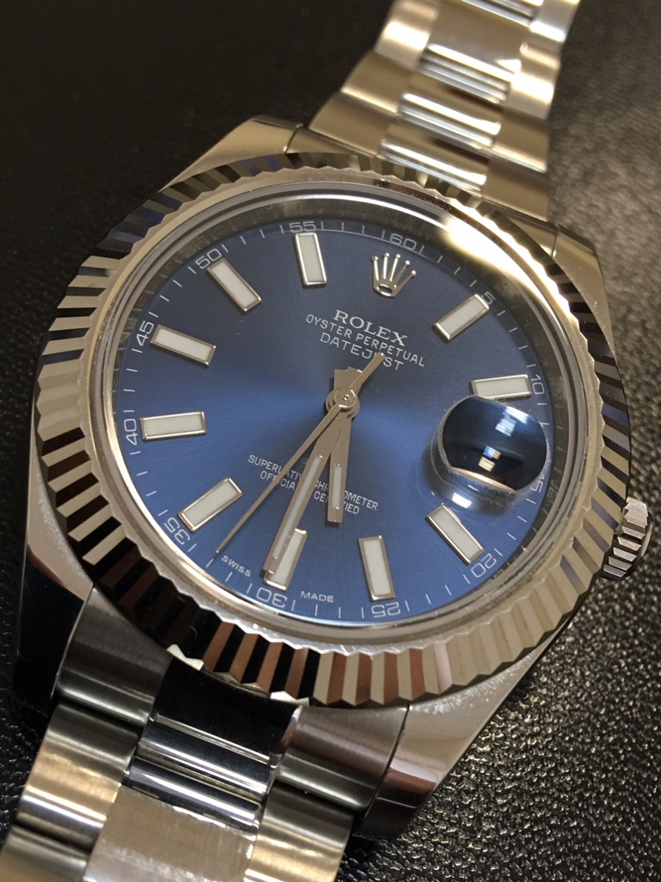 Предлагаю к продаже из своей коллекции самые красивые часы из линейки DateJust II - Rolex DateJust II 116334 Blue Dial , с метками-палочками с люминовой и рифленым безелем из белого золота, в корпусе диаметром 41 мм !!!