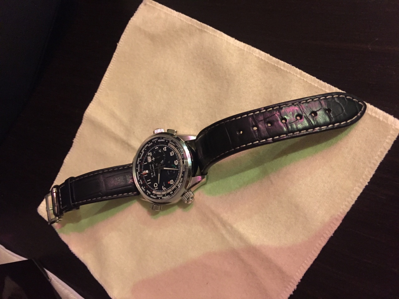 На внутренней стороне ремня есть следы носки, и как в дополнение комплектую часы новым коричневым ремешком из кожи аллигатора.