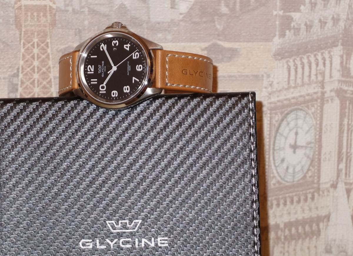 Корпус классической формы имеет диаметр 40мм. Стекло сапфир. WR50м. Прозрачная завинчивающаяся задняя крышка. Фирменный кожаный ремешок с логотипом Glycine. Механизм- знаменитый и за многие десятилетия отлично себя зарекомендовавший ETA 2824-2. Фактическая точность данного экземпляра часов- +1-2 сек/сутки.