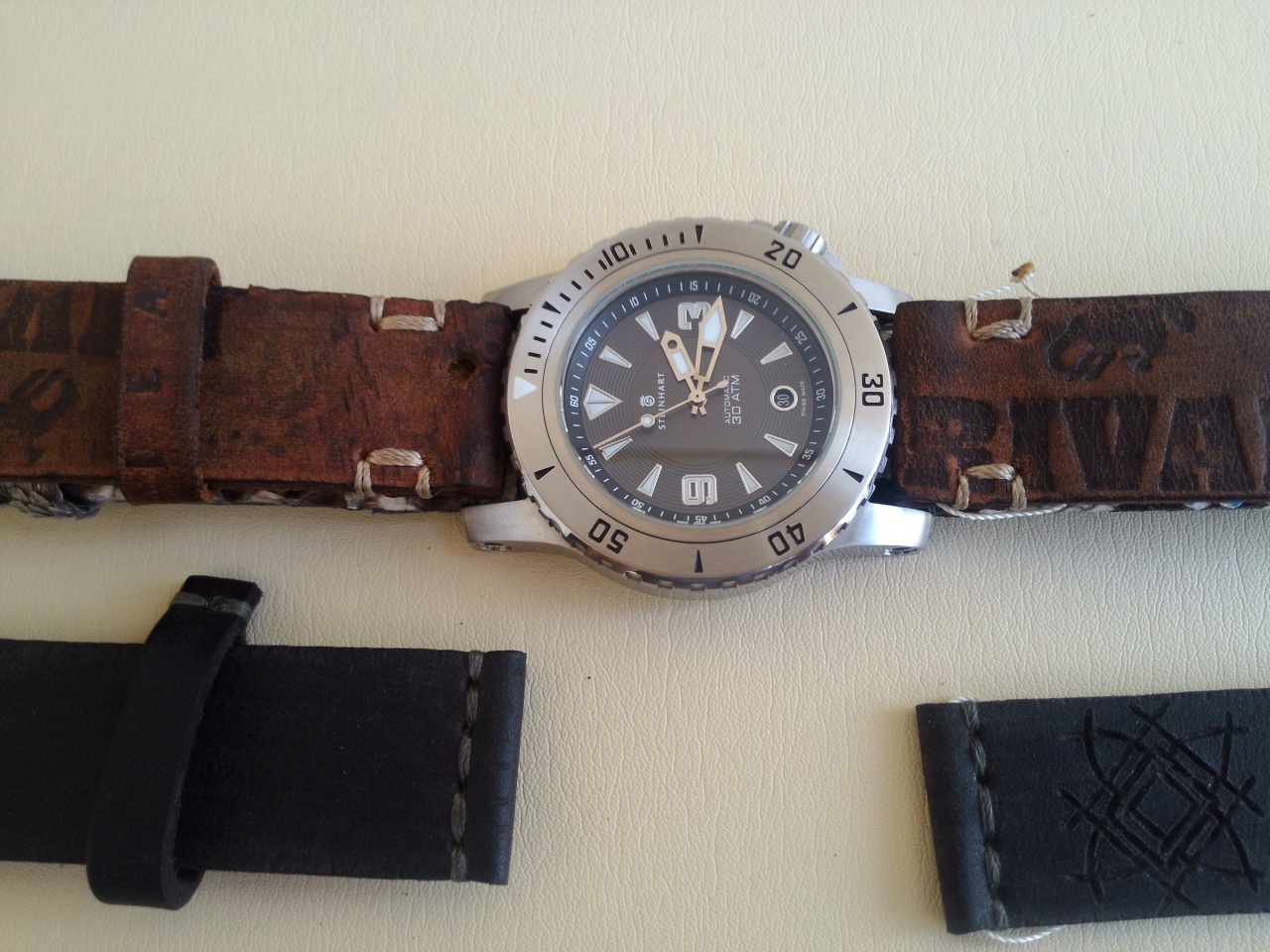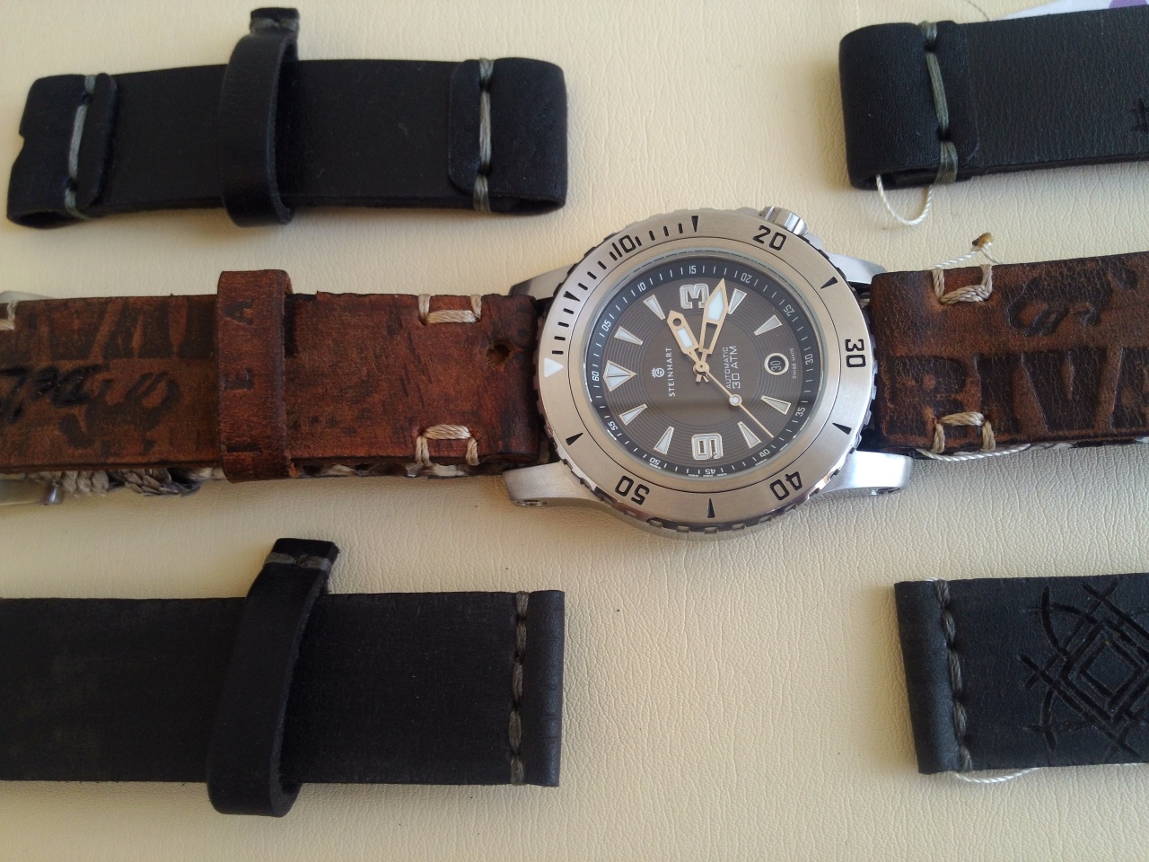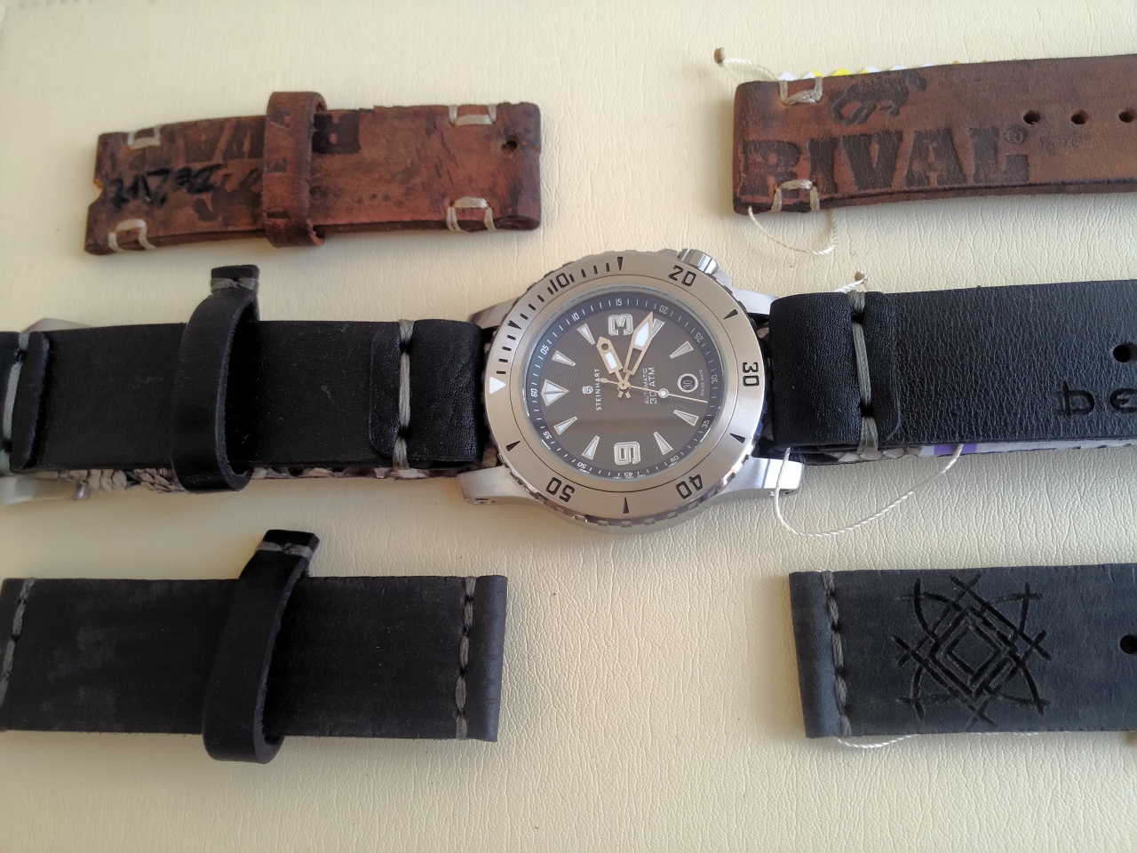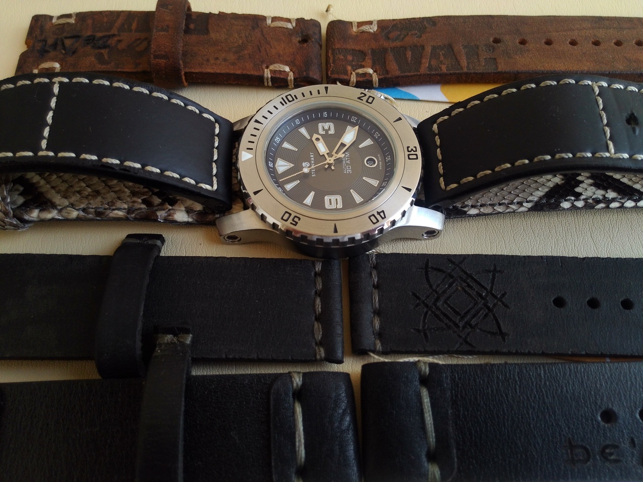В придачу к часам идут совершенно новые, дизайнерские экслюзивчики (3штуки), один ремшок из кожи питона ручной работы, а также родной ремешок (который находится в еще очень приличном состоянии)...
