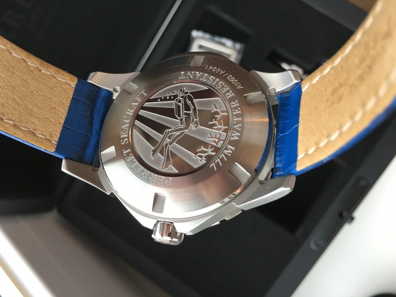 Продаю Часы Perrelet seacraft ref:A1053 синего цвета состояние отличное за исключением нескольких мелких царапин на безеле. Стекло в идеале. Полный комплект второй ремень для дайвинга не одевался. Да и в часах не плавали) В механизме 21 камень,частота 28800 полуколебаний в час. Противоударная система Incabloc. Запас хода 40 часов. Безель вращается в одном направлении. Завинчивающиеся задняя крышка и заводная головка. Гелиевый клапан. Стекло с двойным антибликовым покрытием размер 42 мм. ЦЕНА В МАГАЗИНАХ МОСКВЫ 190-250 тысяч рублей.