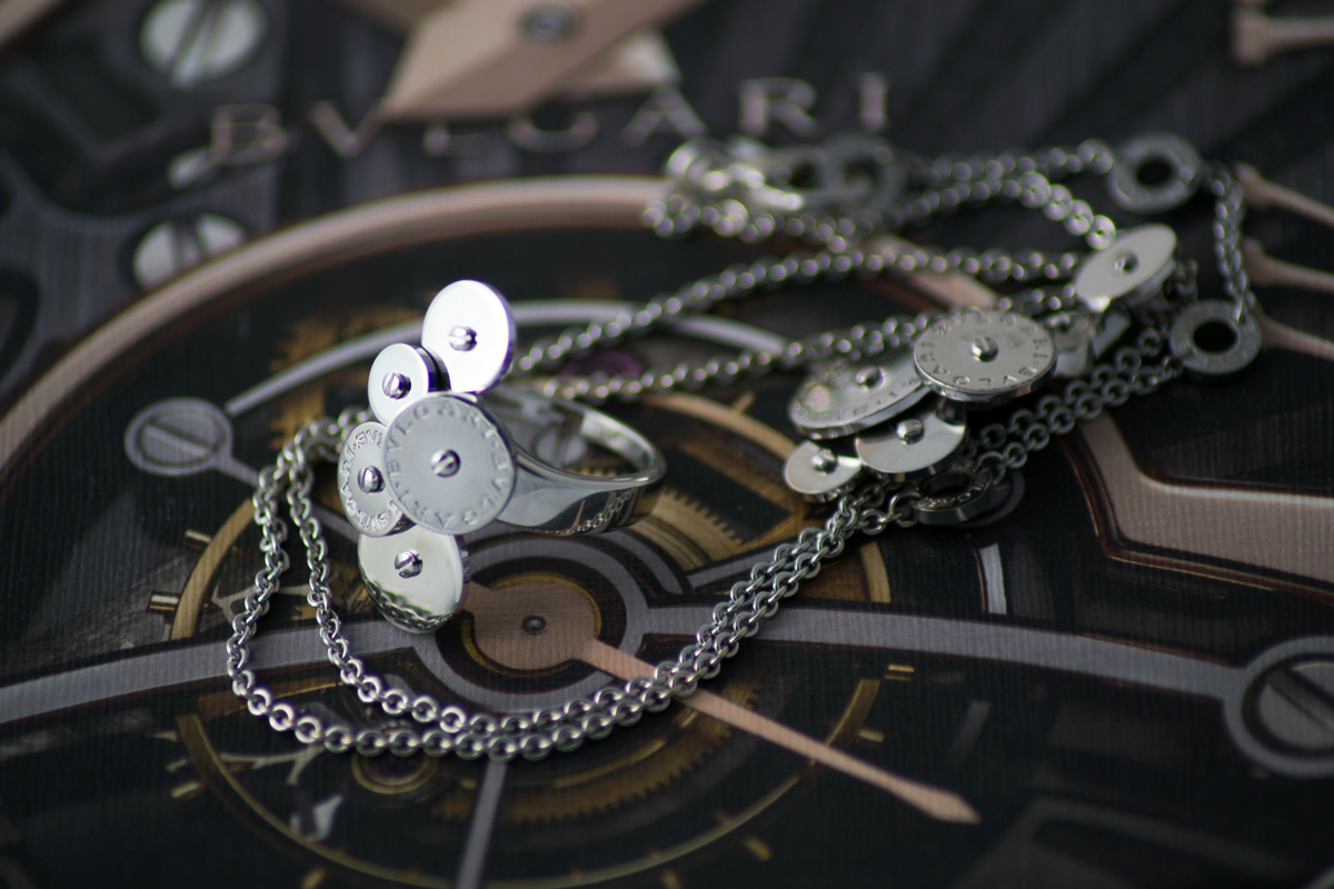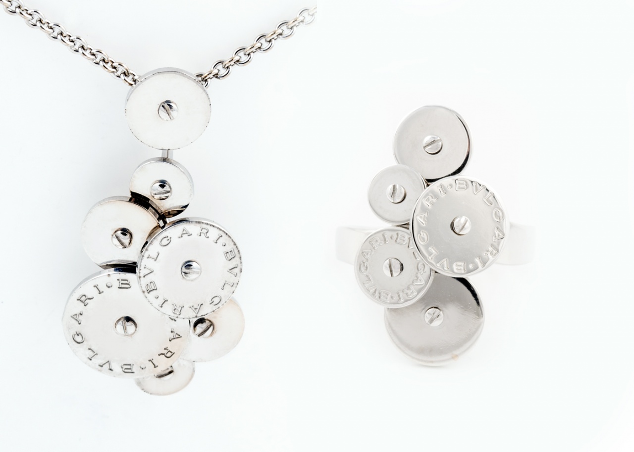 ХИТ 8-го Марта!!! Набор кольцо и подвеска Bvlgari "Диски", белое золото!! Распродажа!!
