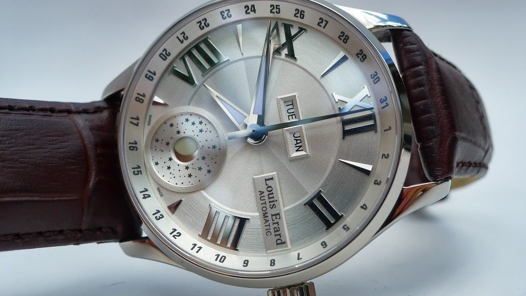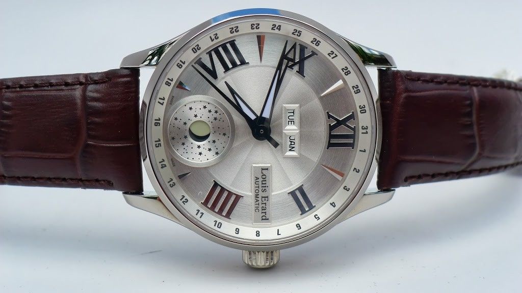Механика с автоподзаводом с указателями-дата,день недели,месяц и фаза луны.