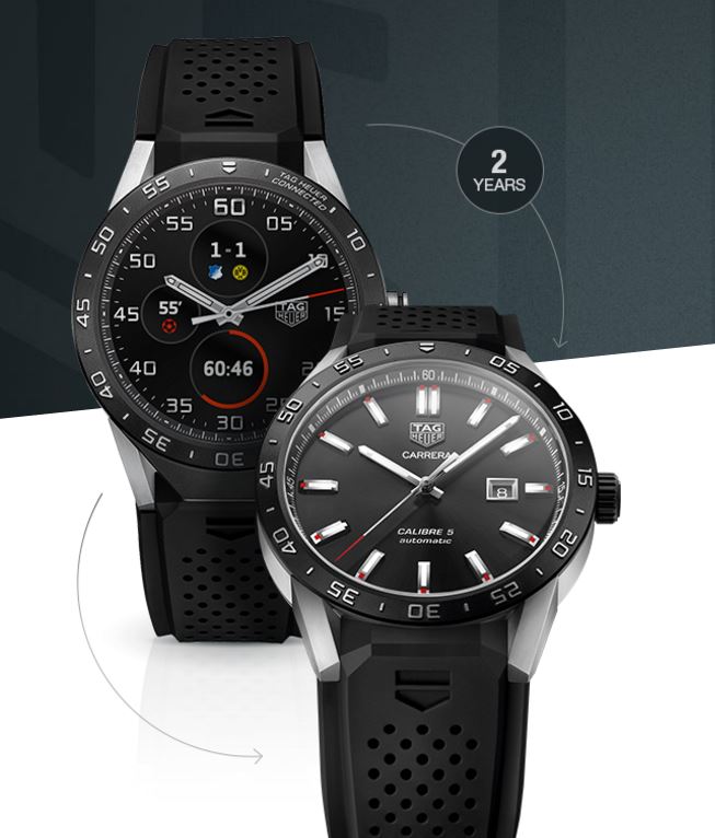 По истечении двухлетней гарантии на смарт-часы TAG Heuer Connected их можно будет поменять на лимитированные TAG Heuer с механическим сердцем Calibre 5 специально изготовленные для этой серии.