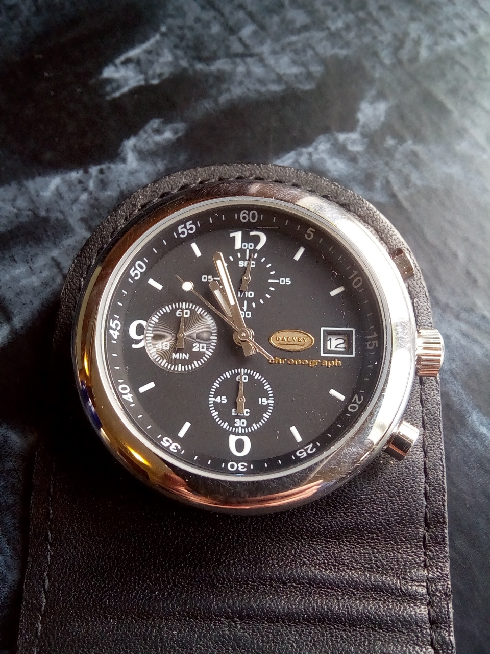 Продам хронограф Dalvey,полностью изготовлен из стали.Крепление на пояс выполнено из натуральной кожи.Кварцевое стекло устойчиво к появлению царапин. Механизм часов - кварцевый.Устройство оснащено профессиональным хронографом,отображают дату. Корпус часов водонепроницаем.