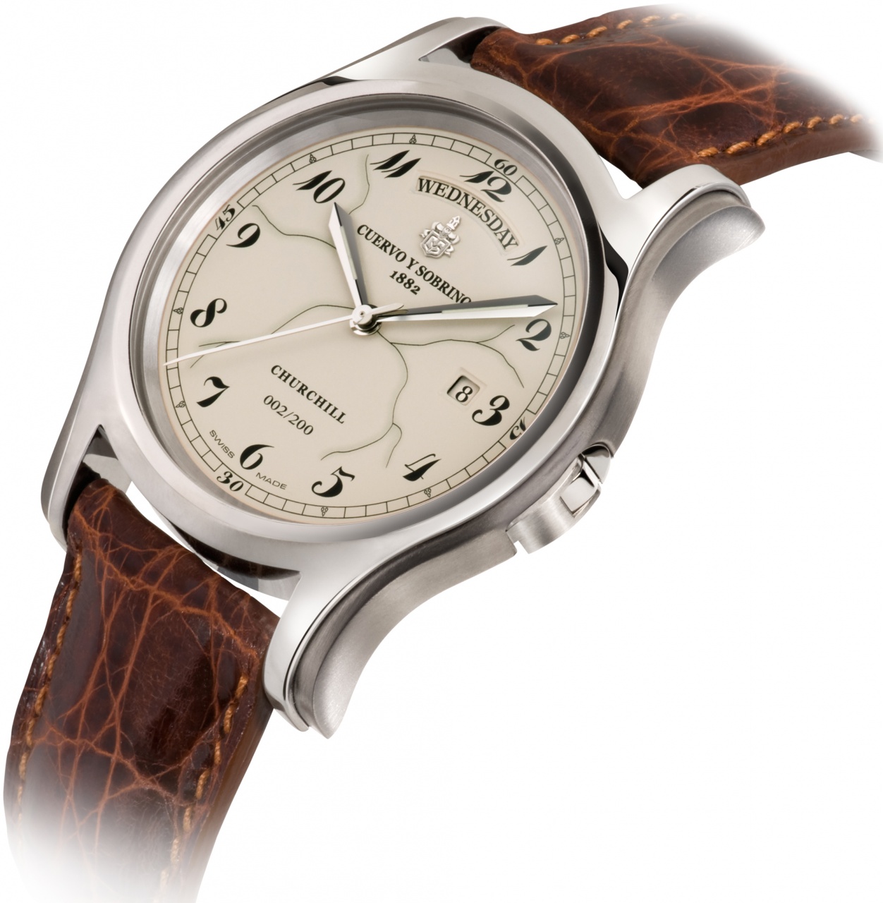 Новая лимитированная модель Robusto Day-Date Churchill (Ref. 2810.1IC) от швейцарского бренда с кубинскими корнями Cuervo y Sobrinos, представленная на международной выставке Baselworld-2012, как это и явствует из ее названия, посвящена памяти бывшего премьер-министра Великобритании Уинстона Черчилля, который в свое время был клиентом бутика Cuervo y Sobrinos в Гаване. Этот бутик с конца 40-ых годов прошлого века посещали и другие знаменитые личности, в частности, такие как знаменитые американский писатель Эрнест Хемингуэй, физик Альберт Эйнштейн, итальянская актриса Элеонора Дюз, чилийский поэт Пабло Неруда.