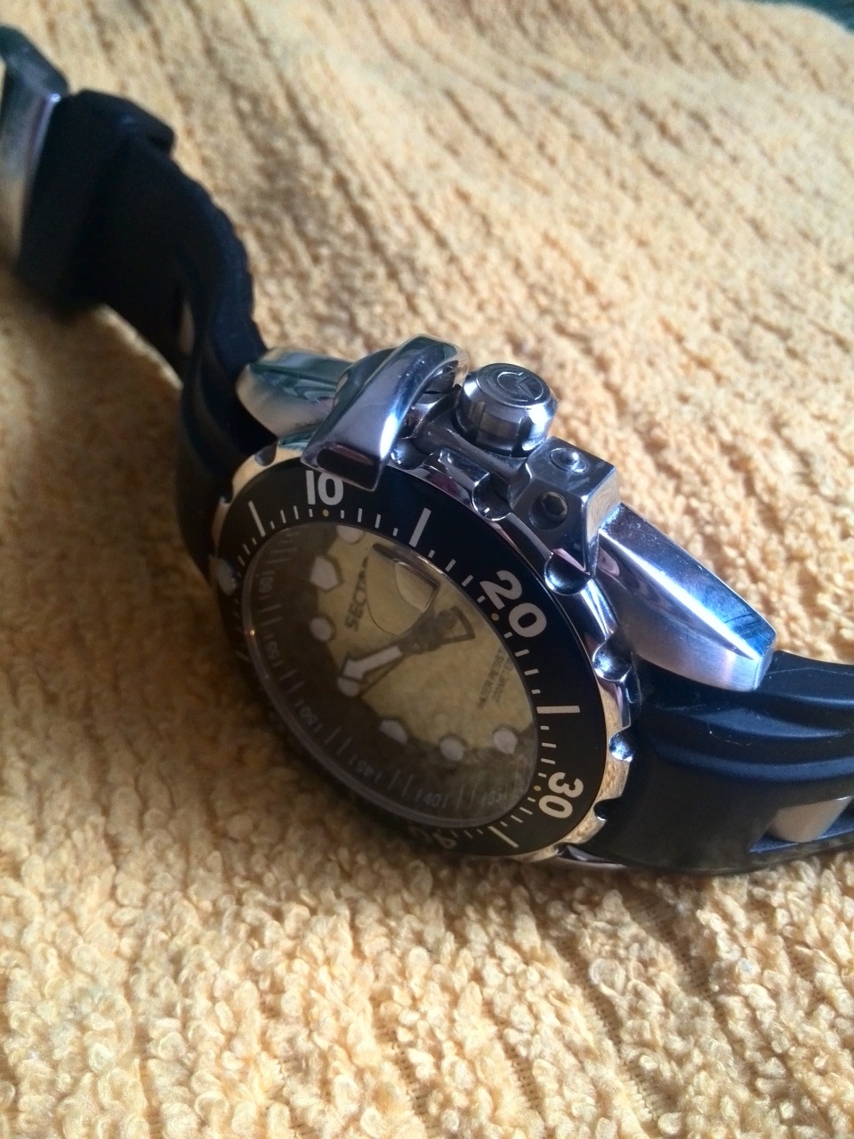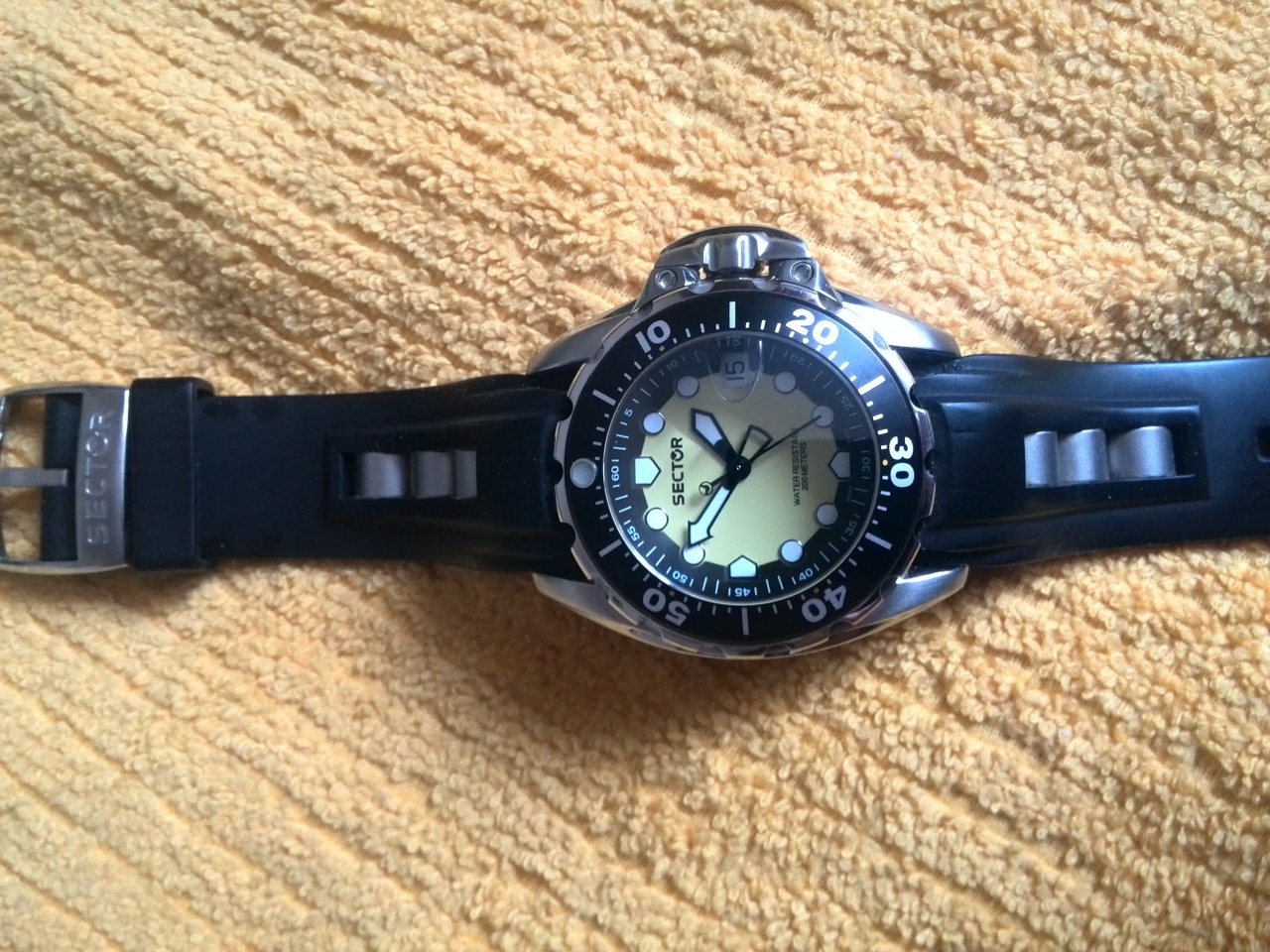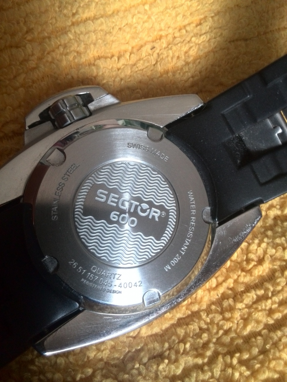 Уважаемые форумчане! Продаются неплохие швейцарские дайверы,а именно SECTOR 600. Кварц SWISS MADE, циферблат жёлтый с чёрным - самое то на лето! Ремешок каучук,запатентованная защита з г . water resist 200m. Закручиваемая з г . Покупал в 2015 г. следов носки практически нет- кроме следов от пряжки на каучуке. Без царапин,сколов и тд.Отвечу на любые вопросы. Цена 8500р. Территориально-Нижний Новгород,пересыл обсуждается. Вкомплекте только часы.