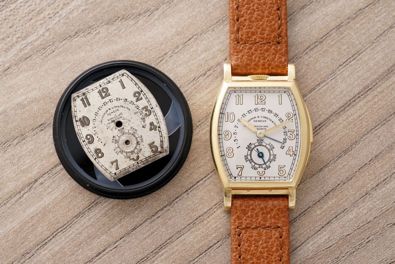 The watch was assigned to Vacheron Constantin’s expertise and talented watchmakers for restoration, left in the caring hands of its maker with the instruction to: restore the movement using the original components where possible, not to polish the case and to create a second dial, identical to the original one with the techniques used in the 1930s. The only exception being the use of modern luminous material as opposed to radium. The original unrestored dial is also offered with this watch.
