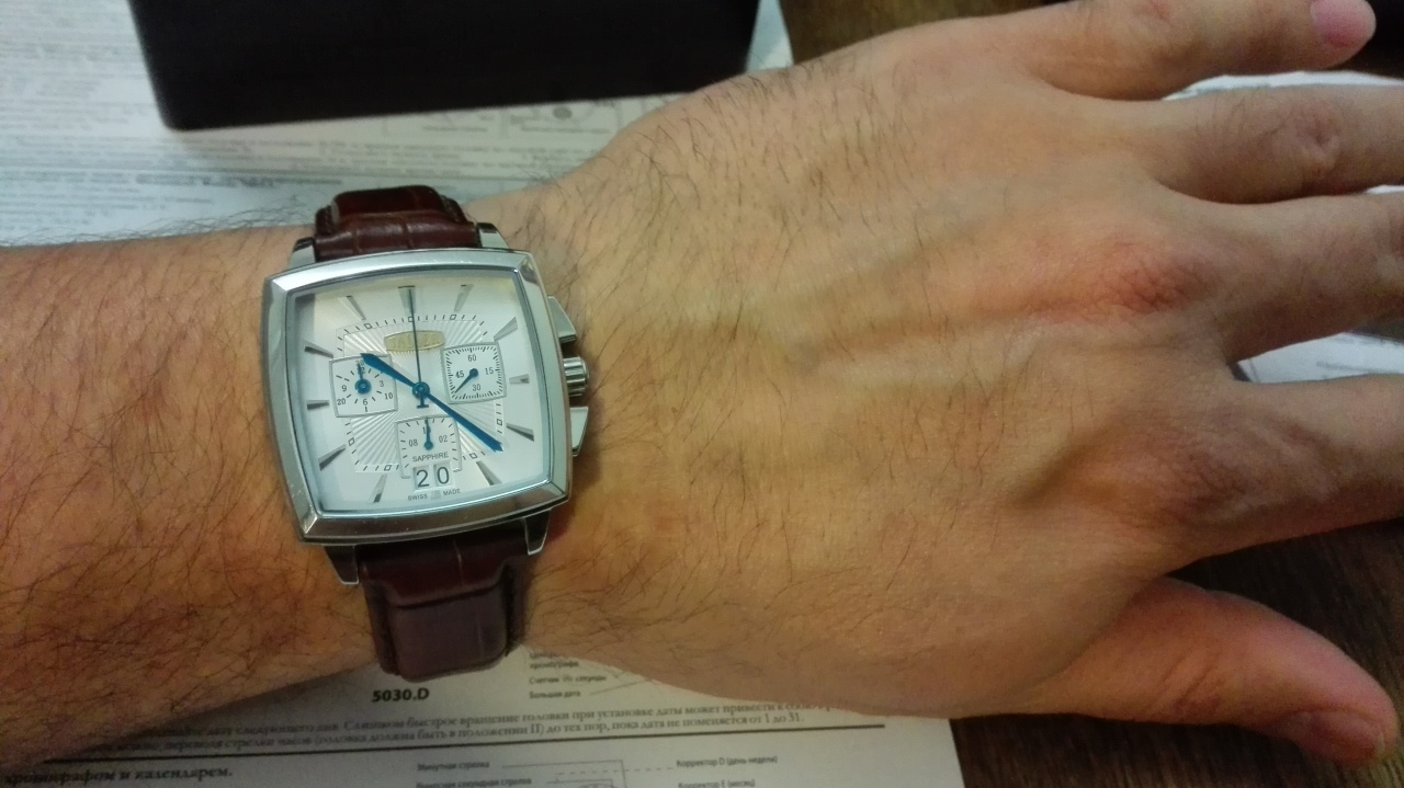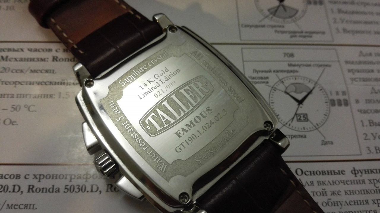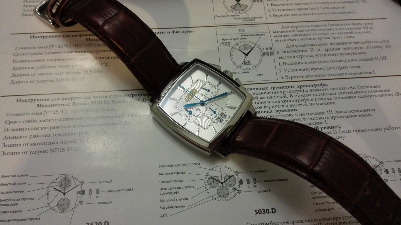 Хронограф с 1/10 секундным, секундным, минутным и часовым счетчиками.