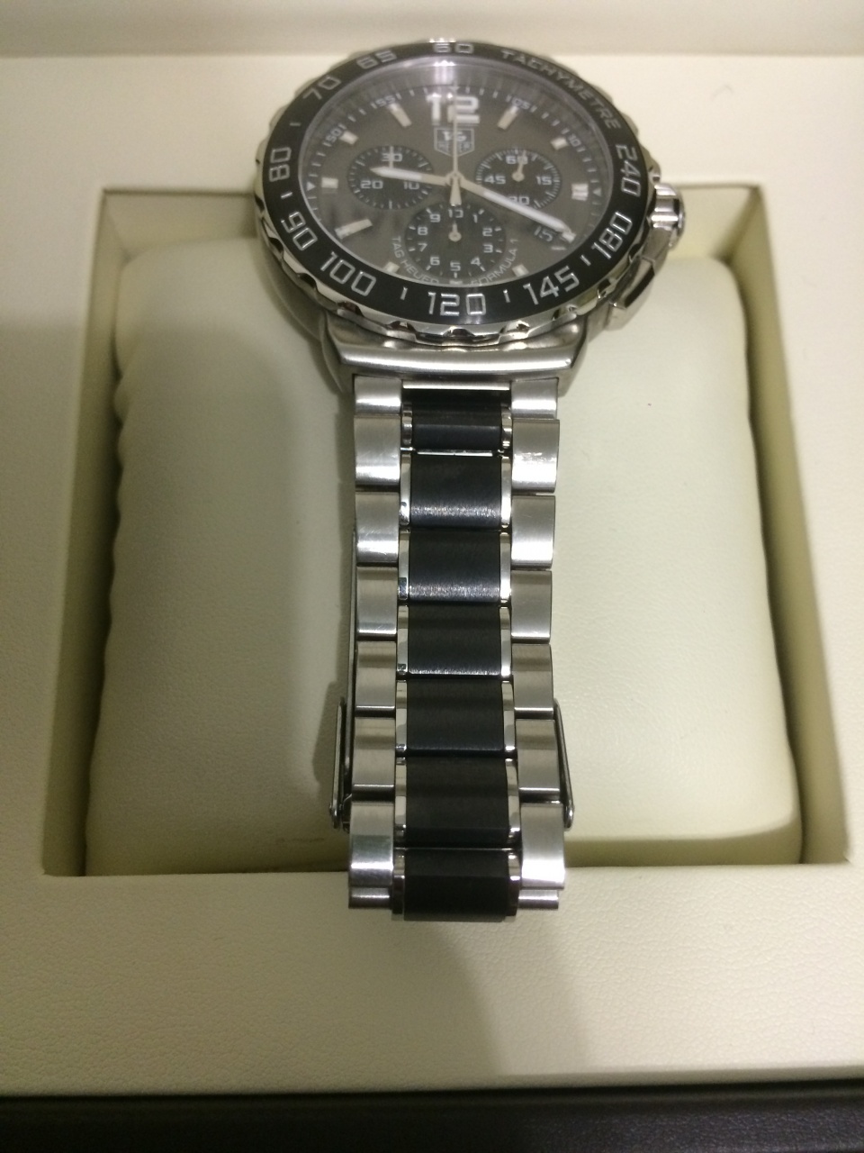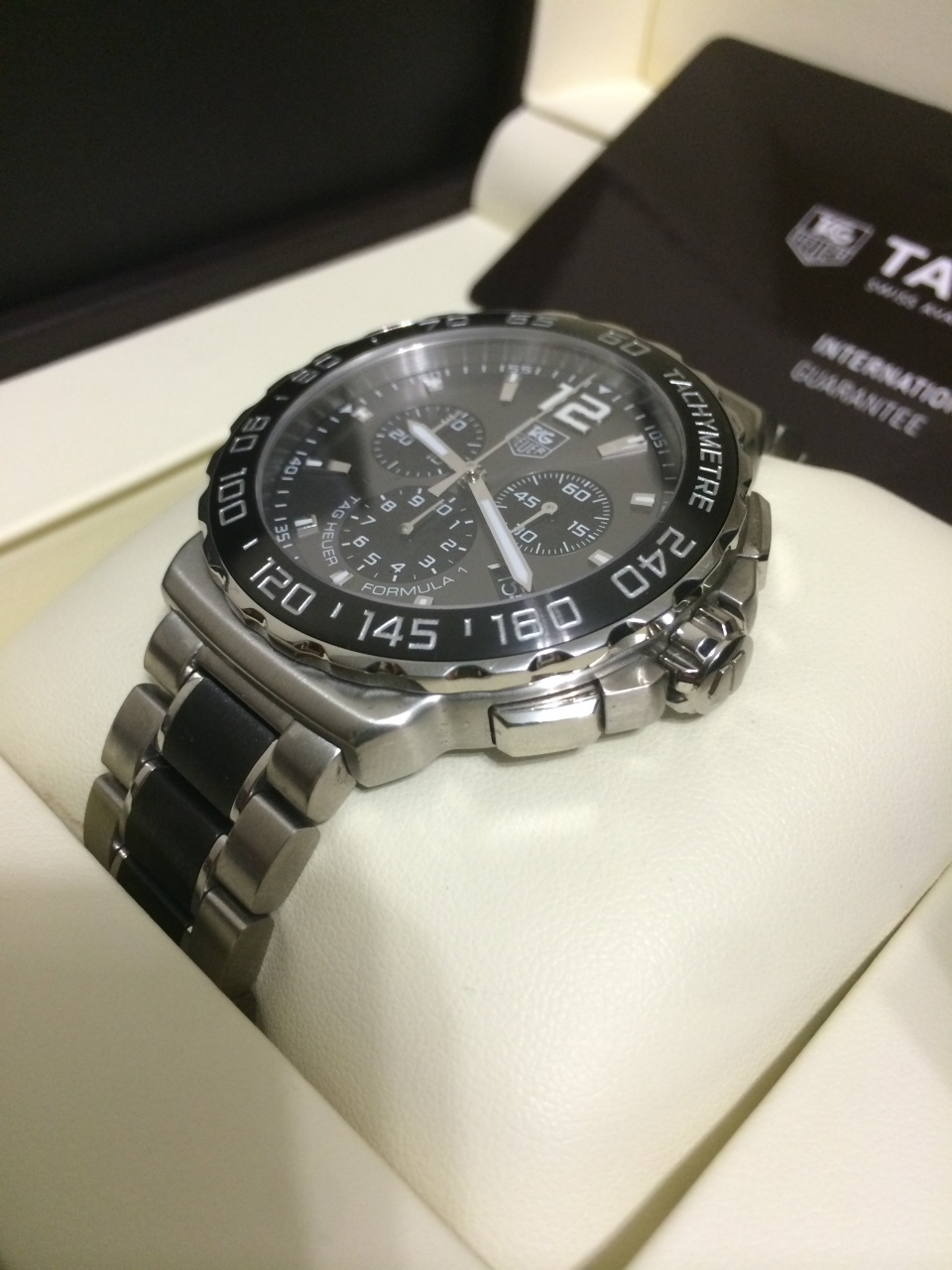 В продаже топовый хронограф Tag Heuer реф. CAU1115.BA0869, являющийся флагманом линейки Formula 1. Состояние часов отличное, близкое к идеальному. Носились очень аккуратно, поэтому, как следствие, вид практически новых часов.