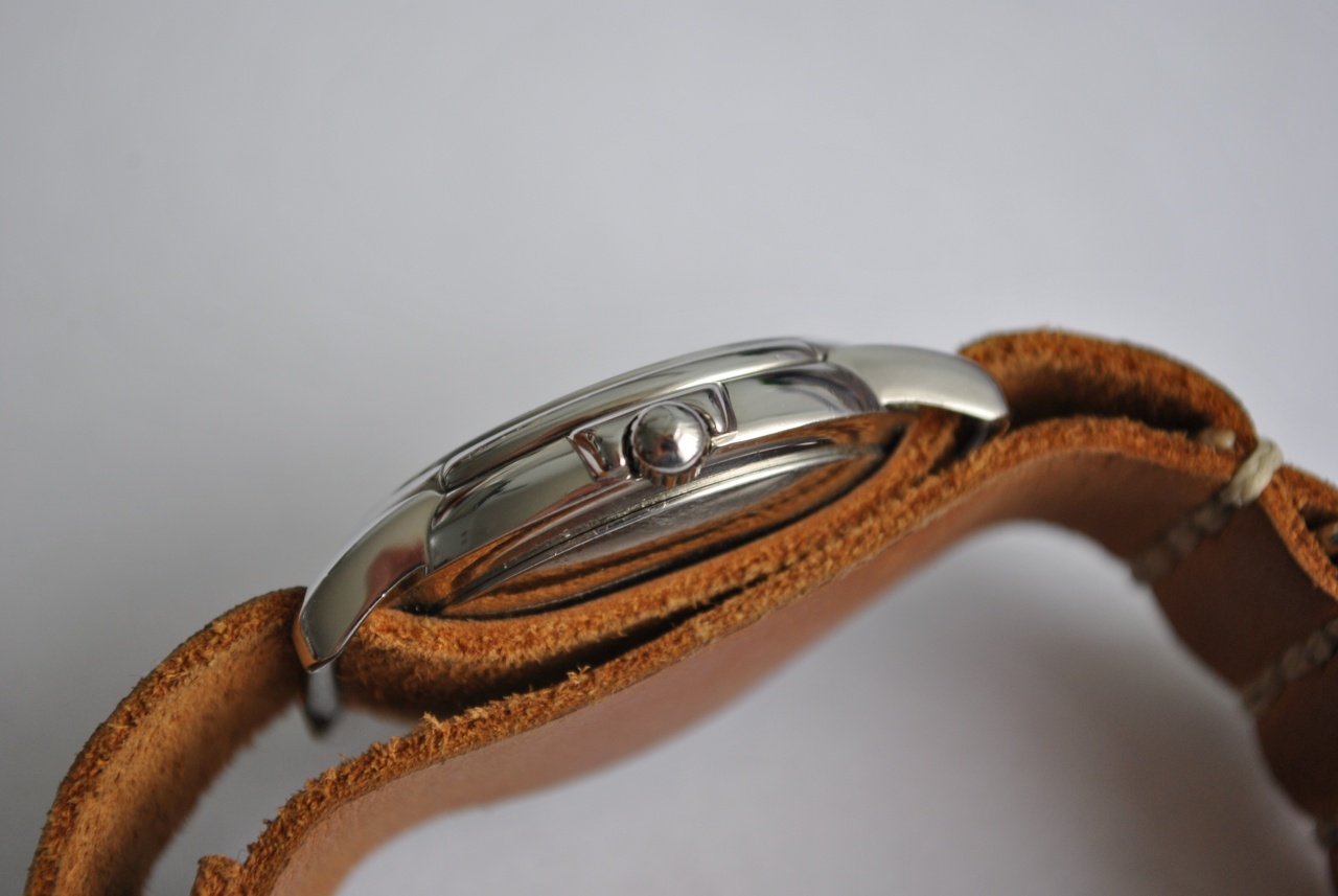 В комплекте не новый, но в хорошем состоянии кожаный ремешок Zulu (ширина ремня 18 мм). На фото надеты на запястье 19 см.