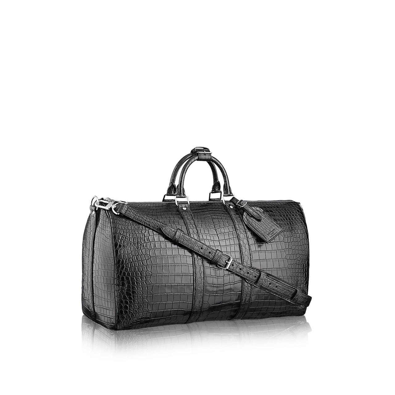 "Сумка-икона Keepall, выпущенная в 1930 г., представлена в прекрасной коже крокодила - в такой версии она смотрится еще великолепнее. Легкая и вместительная сумка Keepall остается неизменным фаворитом среди предметов багажа."
