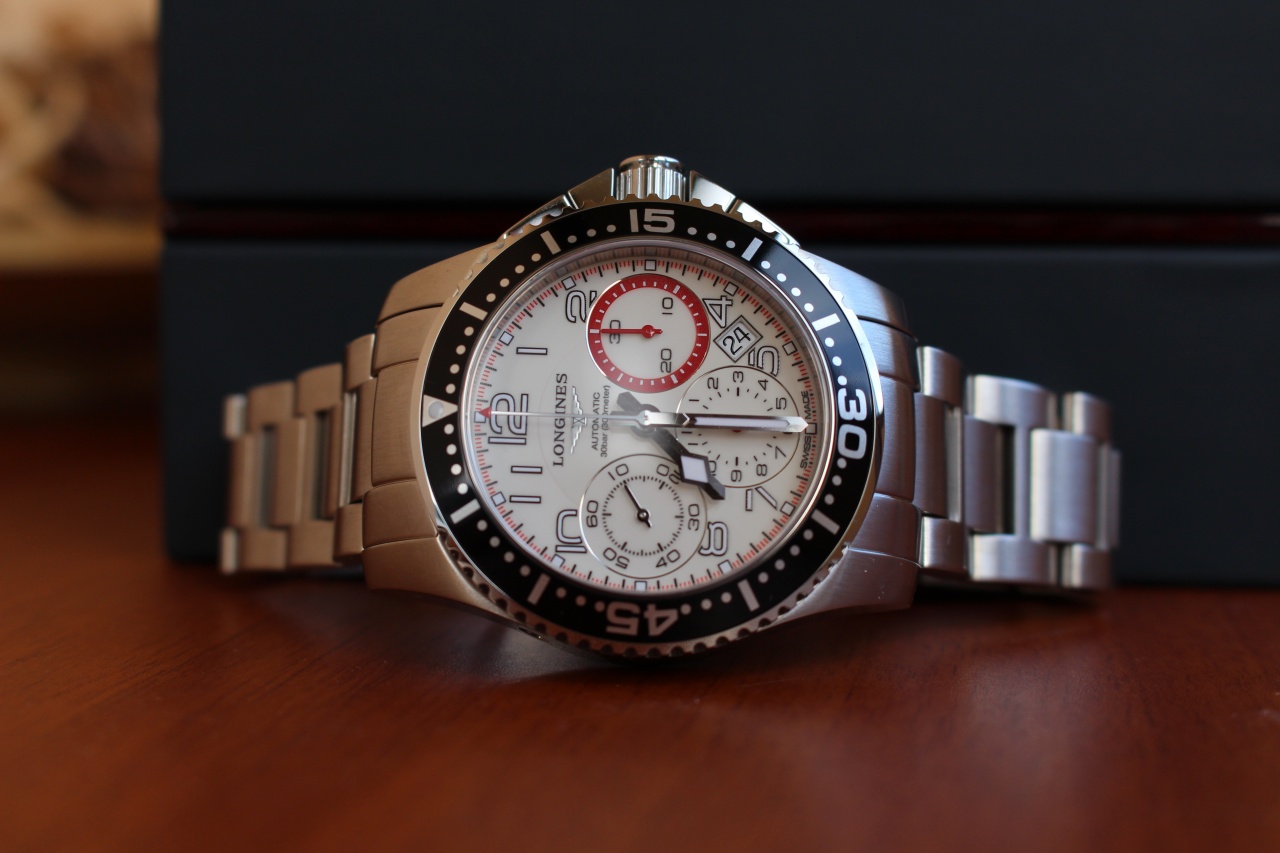 Механический трехсекционный хронограф с колонным колесом и автоподзаводом, однонаправленный вращающийся безель