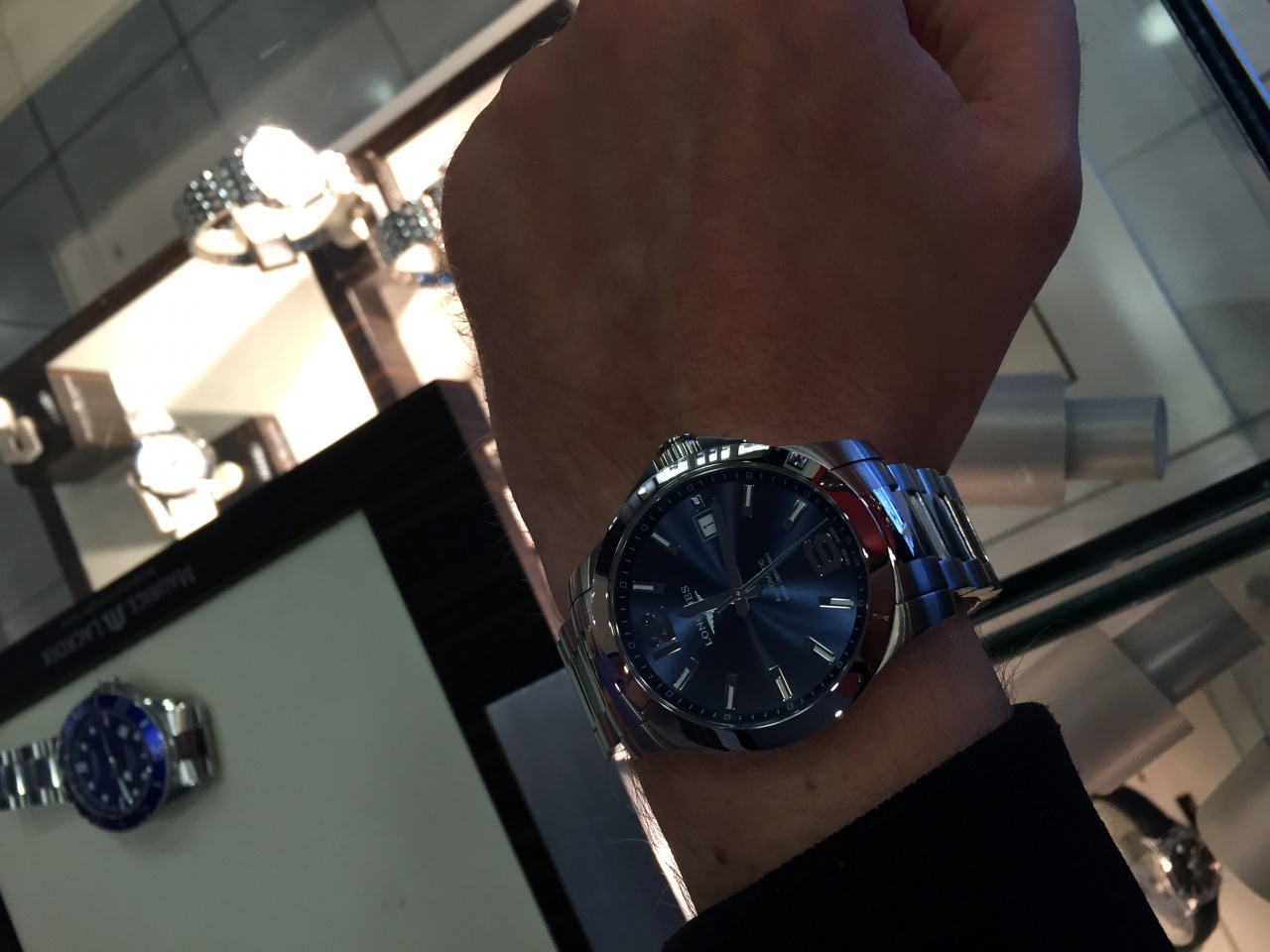 Примерял полосатый таг, слишком велик, ну и опять же, не очень понравился браслет и слухами про резьбу.